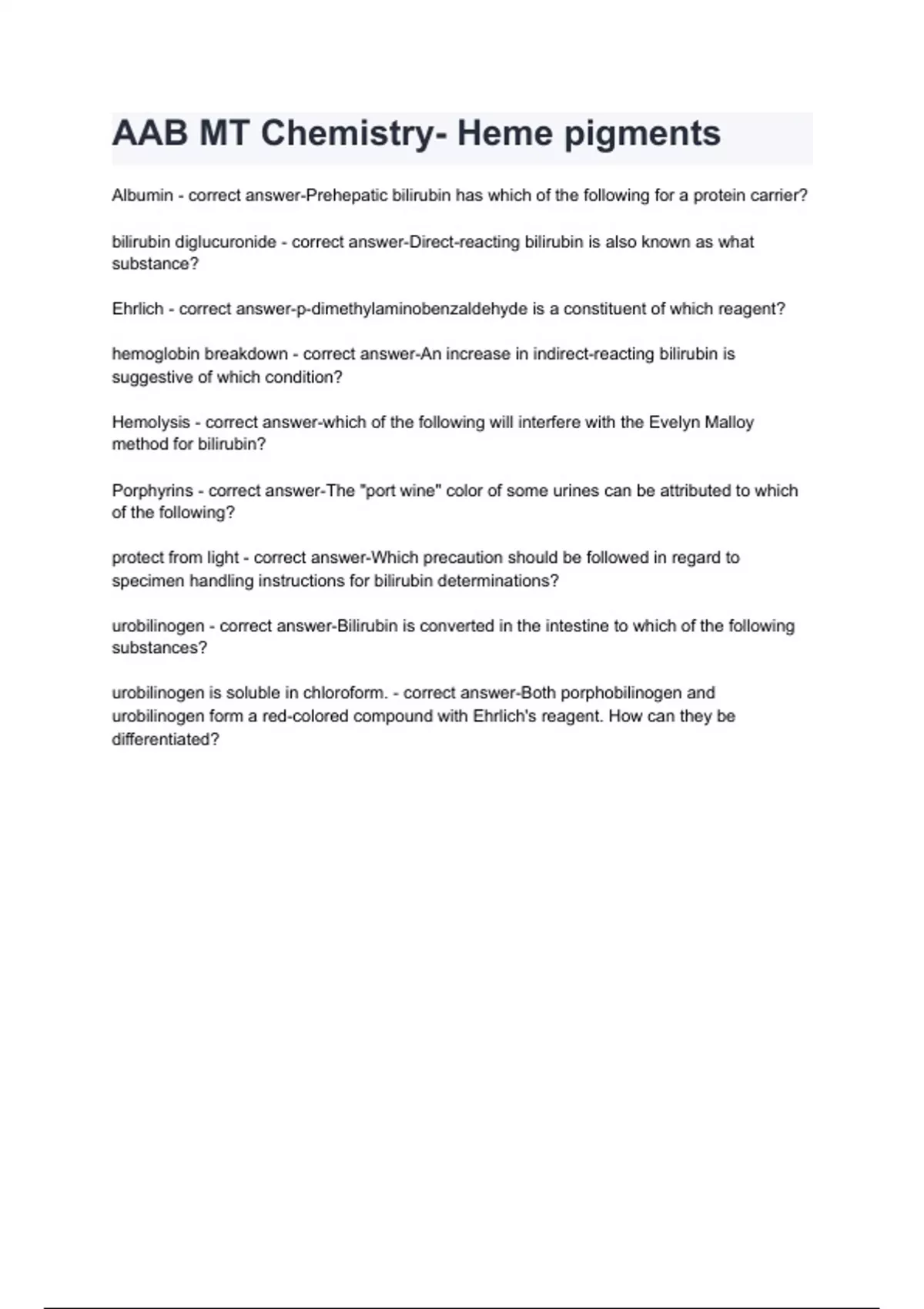 Porphyrins - correct answer-The "port wine" color of some urines can be attributed to which