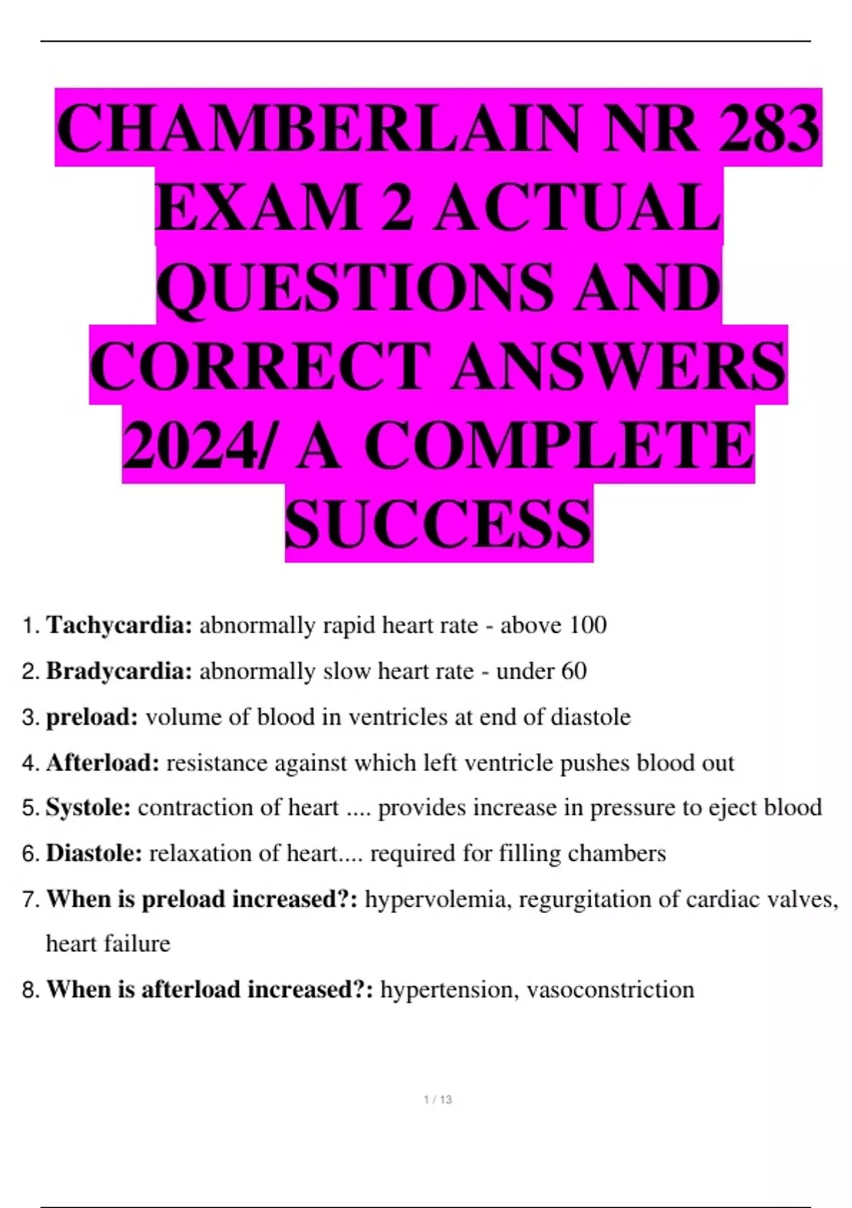 CHAMBERLAIN NR 283 EXAM 2 ACTUAL QUESTIONS AND CORRECT ANSWERS 2024 A COMPLETE SUCCESS