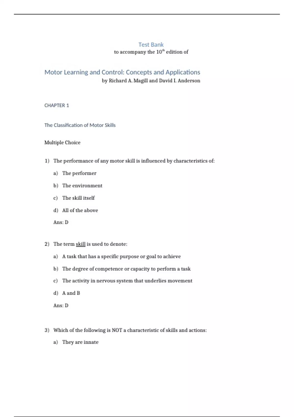 The Classification of Motor Skills