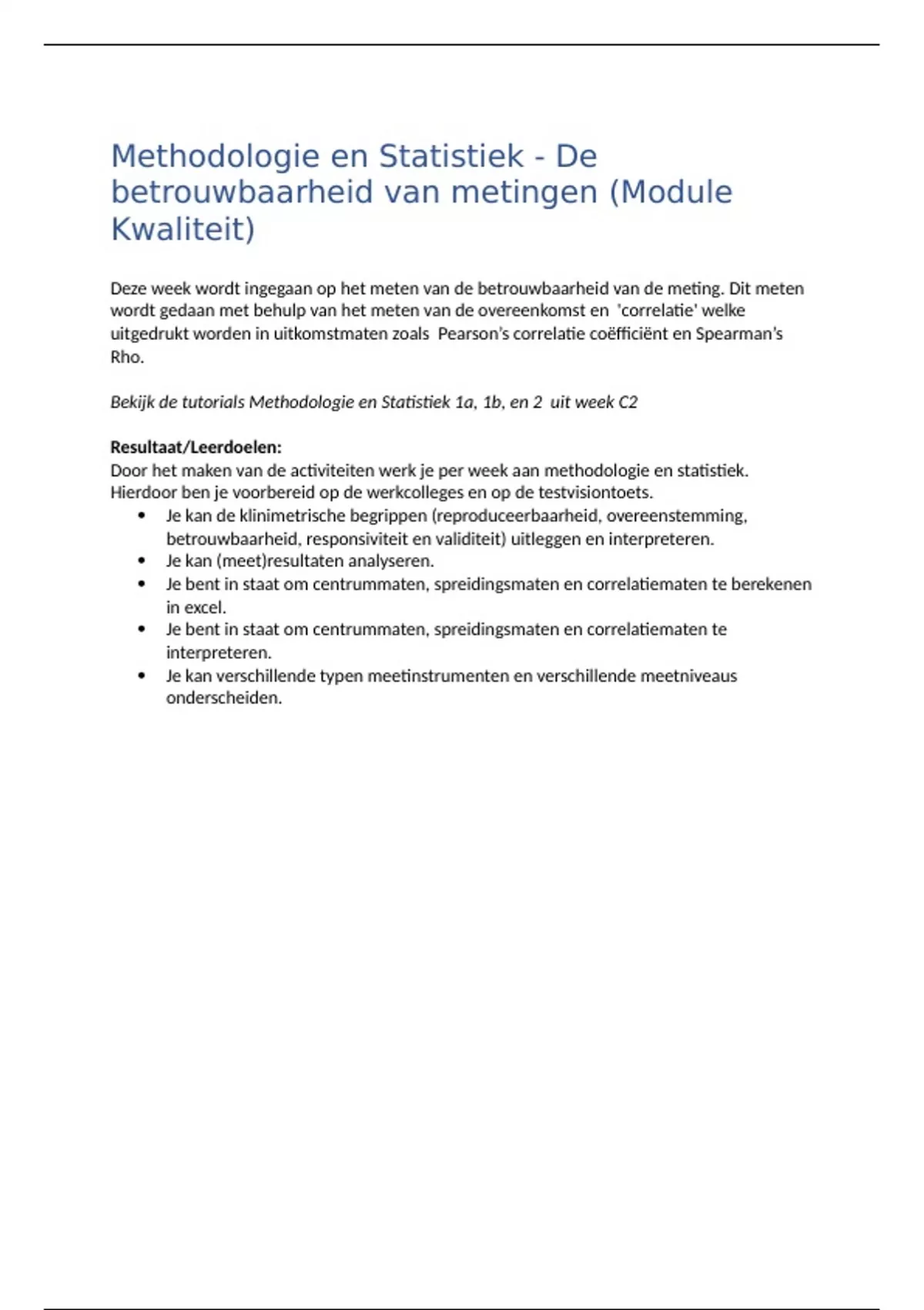Deze week wordt ingegaan op het meten van de betrouwbaarheid van de meting. Dit meten
