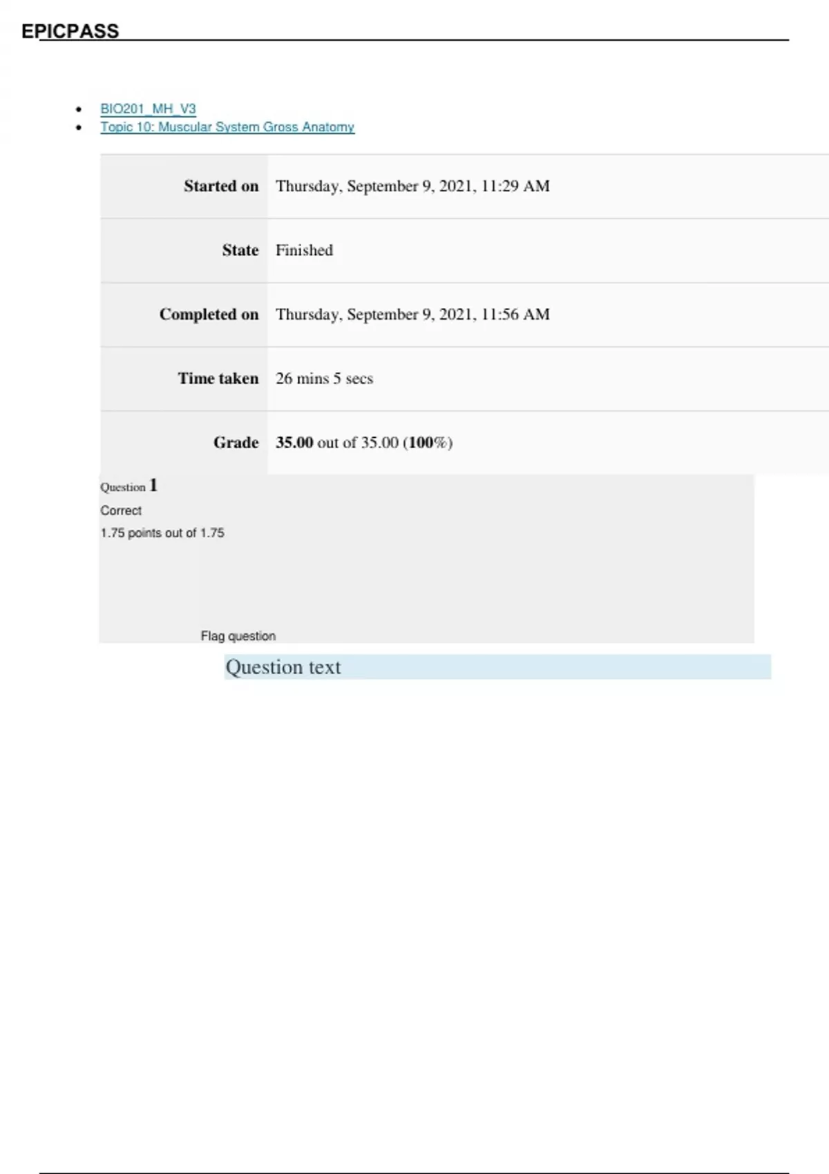BIO 201 / BIO201_MH_V3 Topic 10: Muscular System Gross Anatomy test; Grade 35.00 out of 35.00 (100%) SEPT 2021