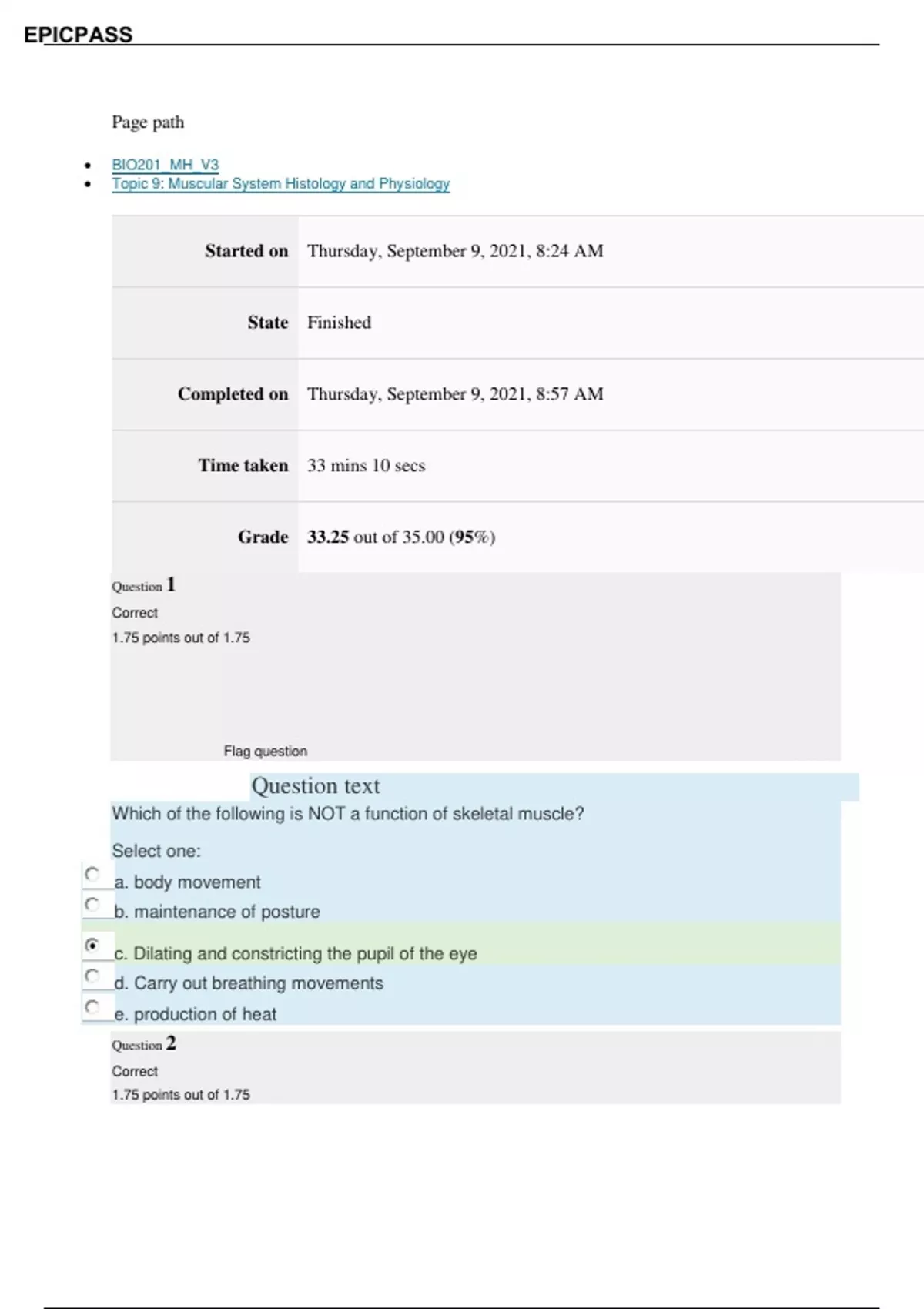 BIO201 Topic 6: Integumentary System graded quiz : Grade 35.00 out of 35.00 (100%) 2021