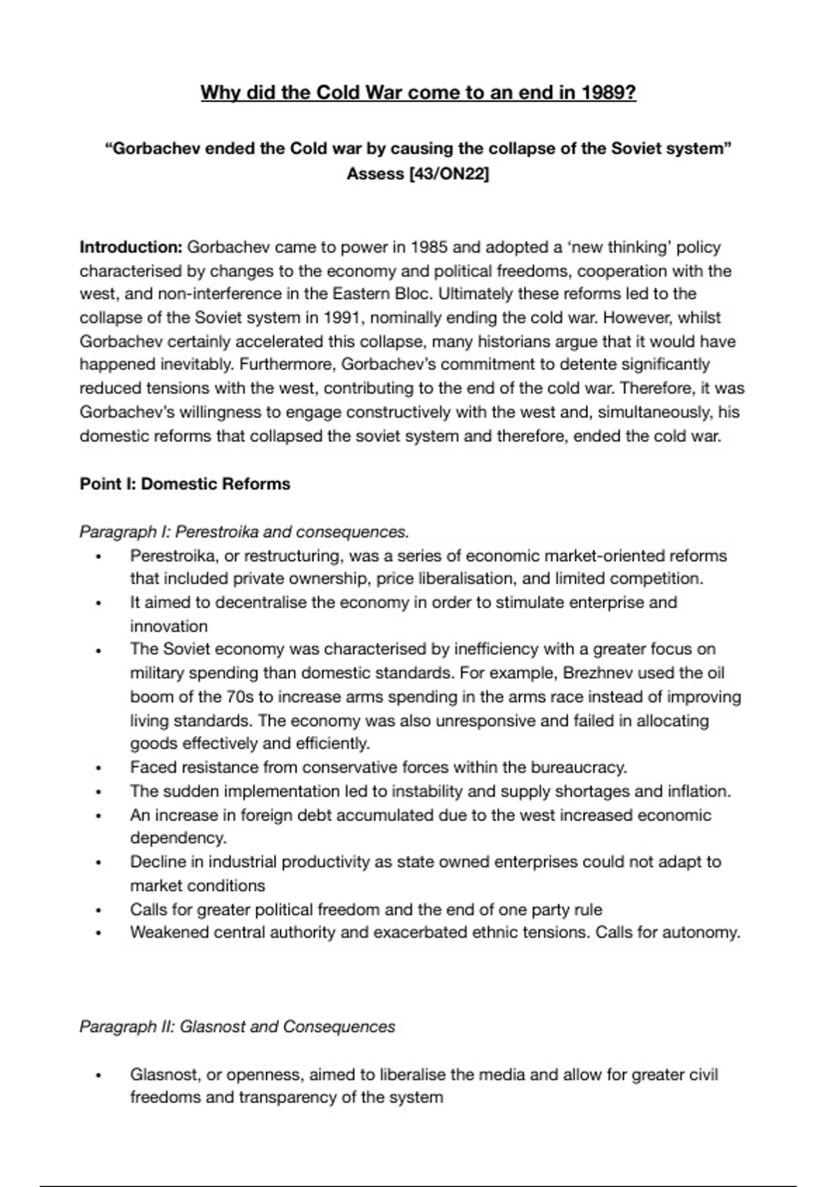 “Gorbachev ended the Cold war by causing the collapse of the Soviet system”