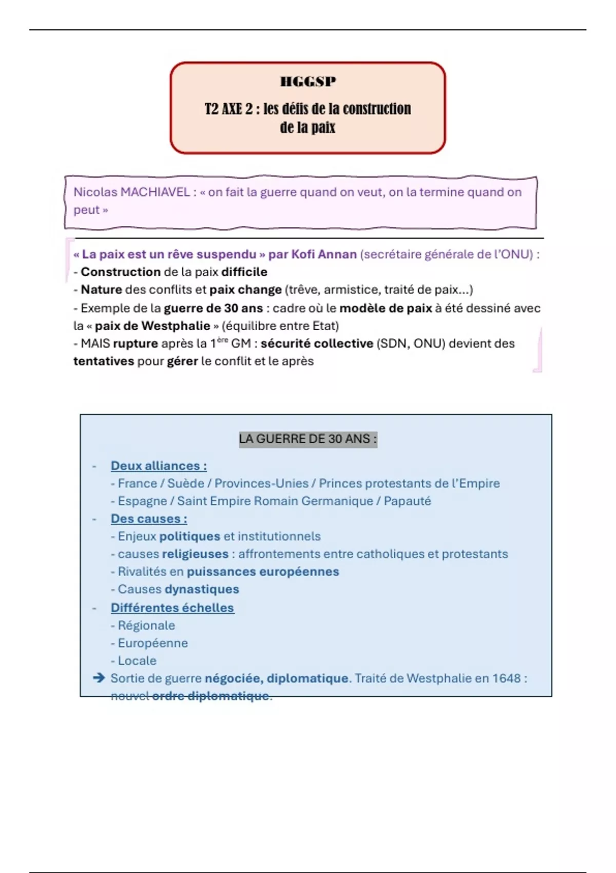 - Exemple de la guerre de 30 ans : cadre où le modèle de paix à été dessiné avec