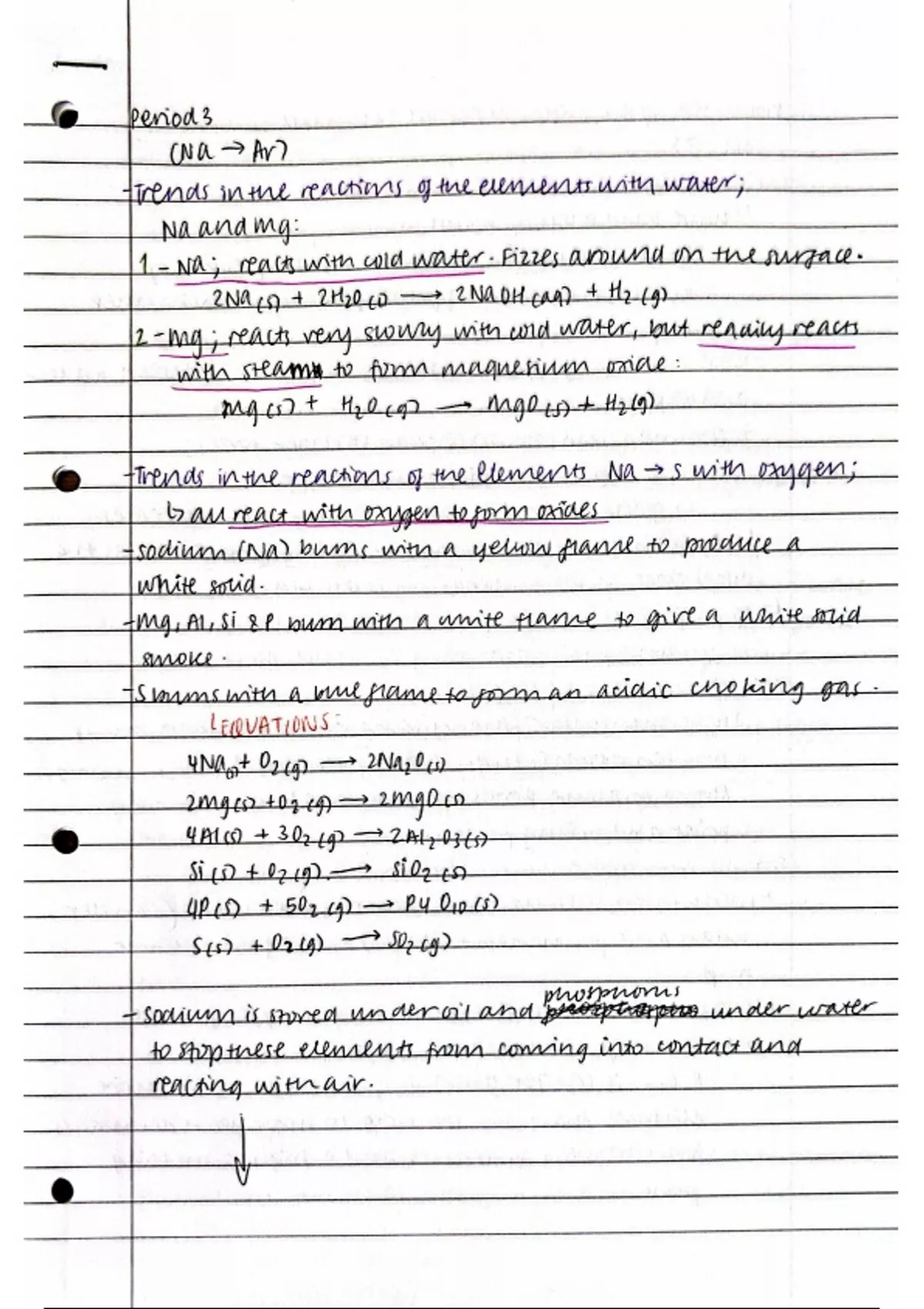 In depth notes on the 'Period 3' topic for the AQA A-Level Chemistry course. Includes definitions, keywords, and key equations with observations. Written by an A* student.