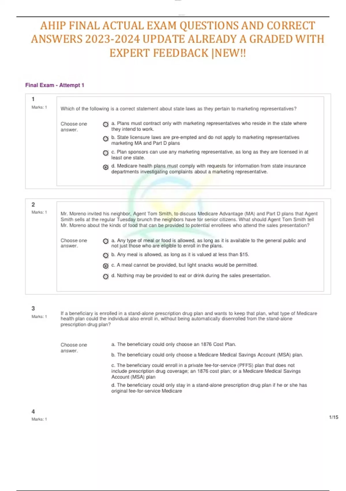 AHIP FINAL ACTUAL EXAM QUESTIONS AND CORRECT