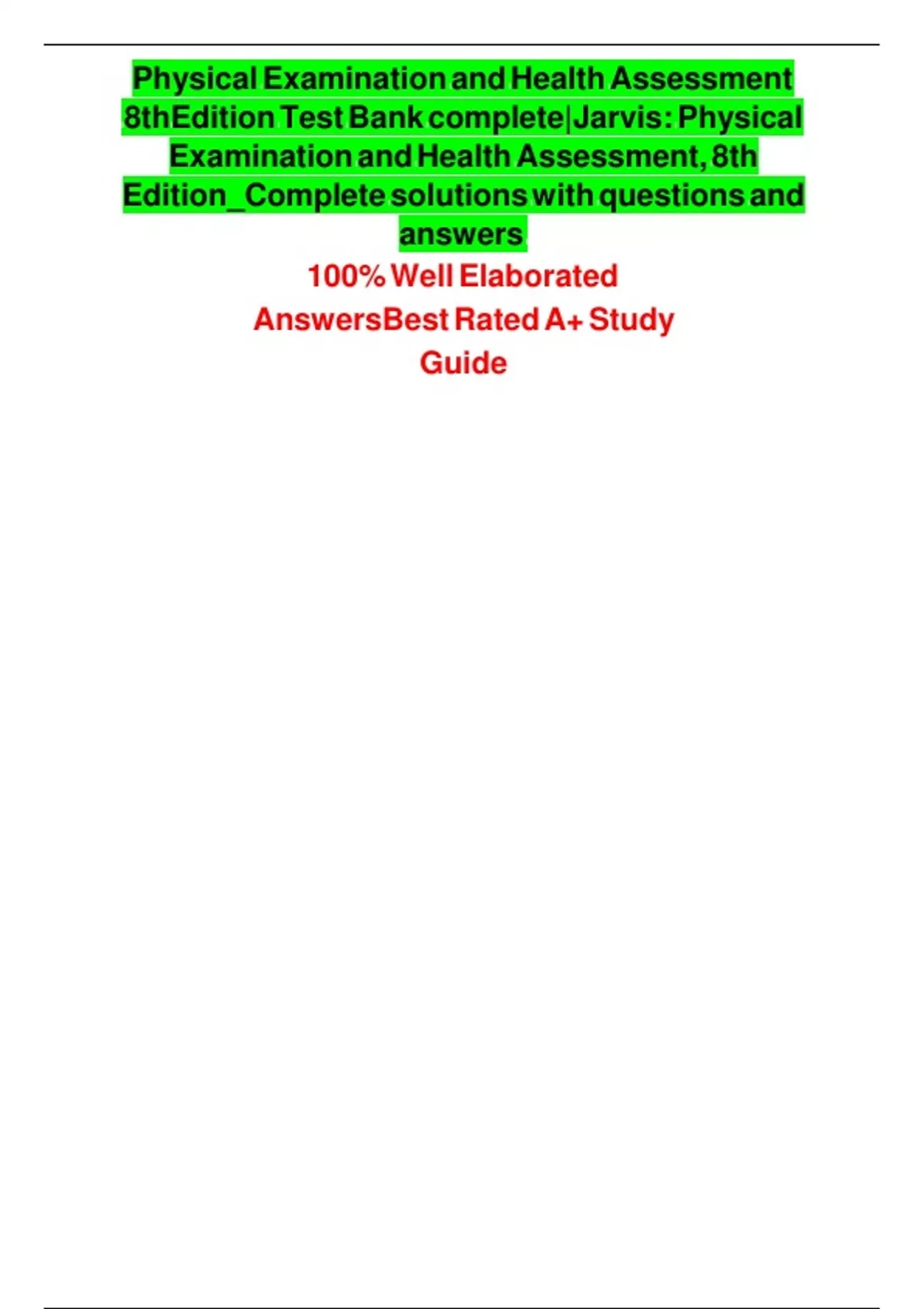 Test Bank For Canadian Physical Examination and Health Assessment 4th Edition by Jarvis All Chapters (1-31) | A+ ULTIMATE GUIDE