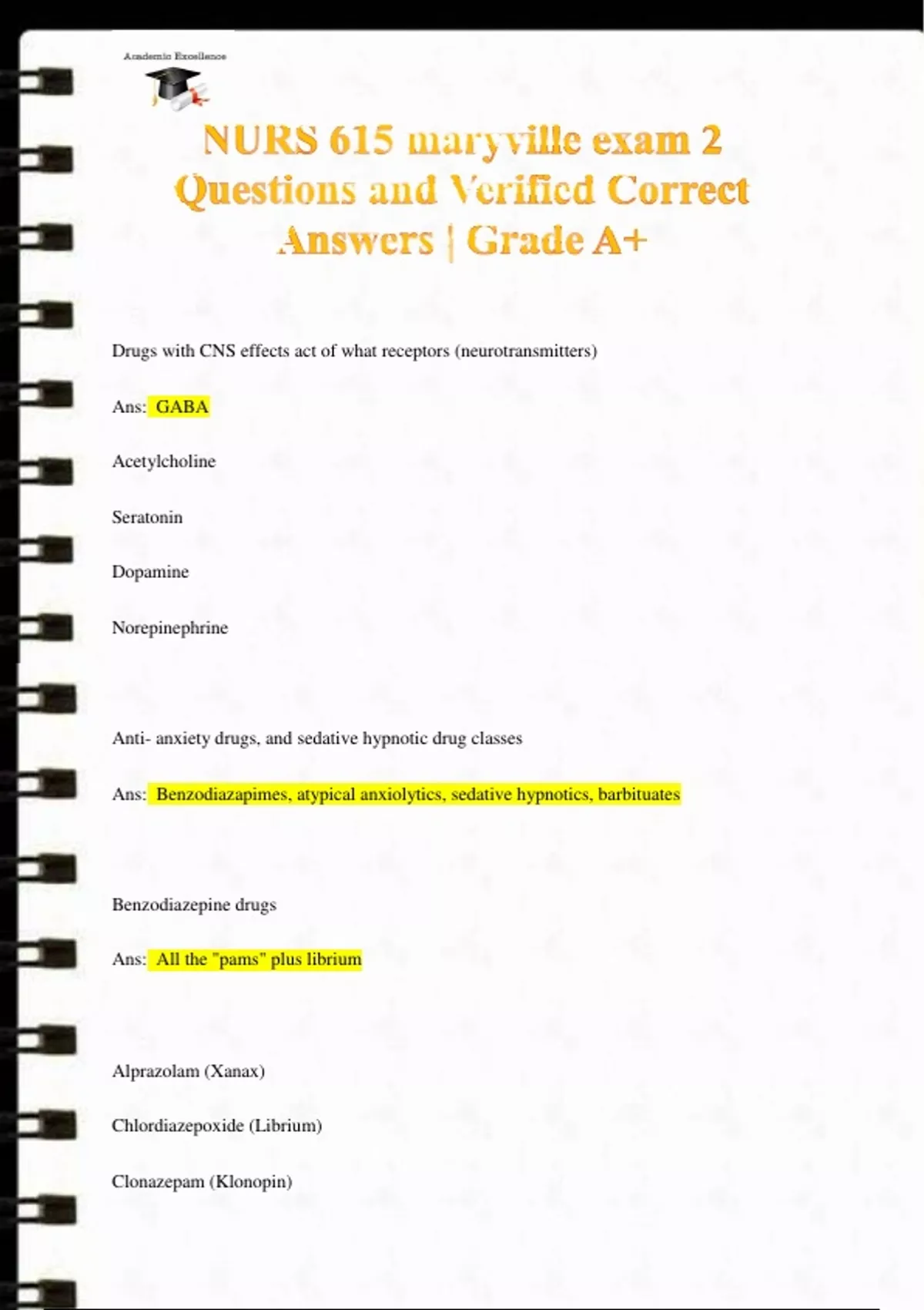 NURS 615 maryville exam 2 Questions and Verified Correct Answers | Grade A+