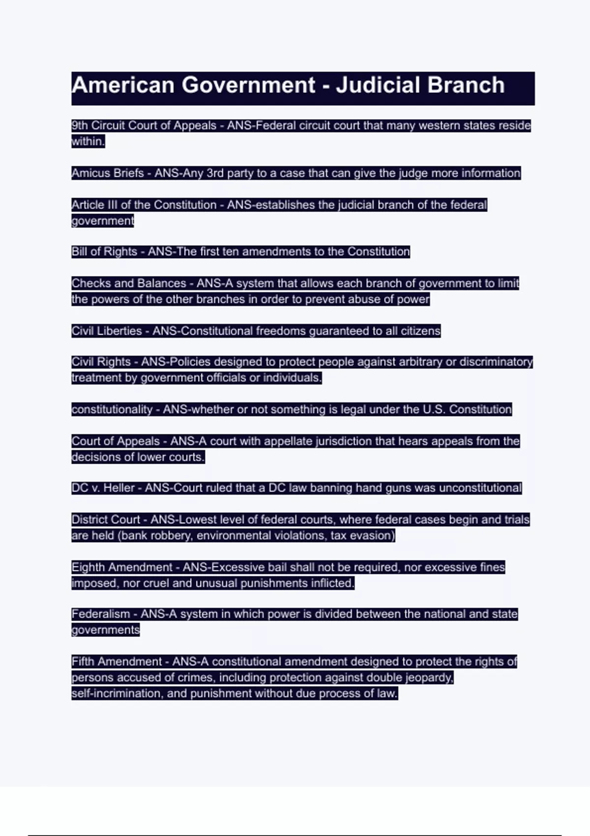 American Government - Judicial Branch Questions with 100% Actual correct answers | verified | latest update | Graded A+ | Already Passed | Complete Solution