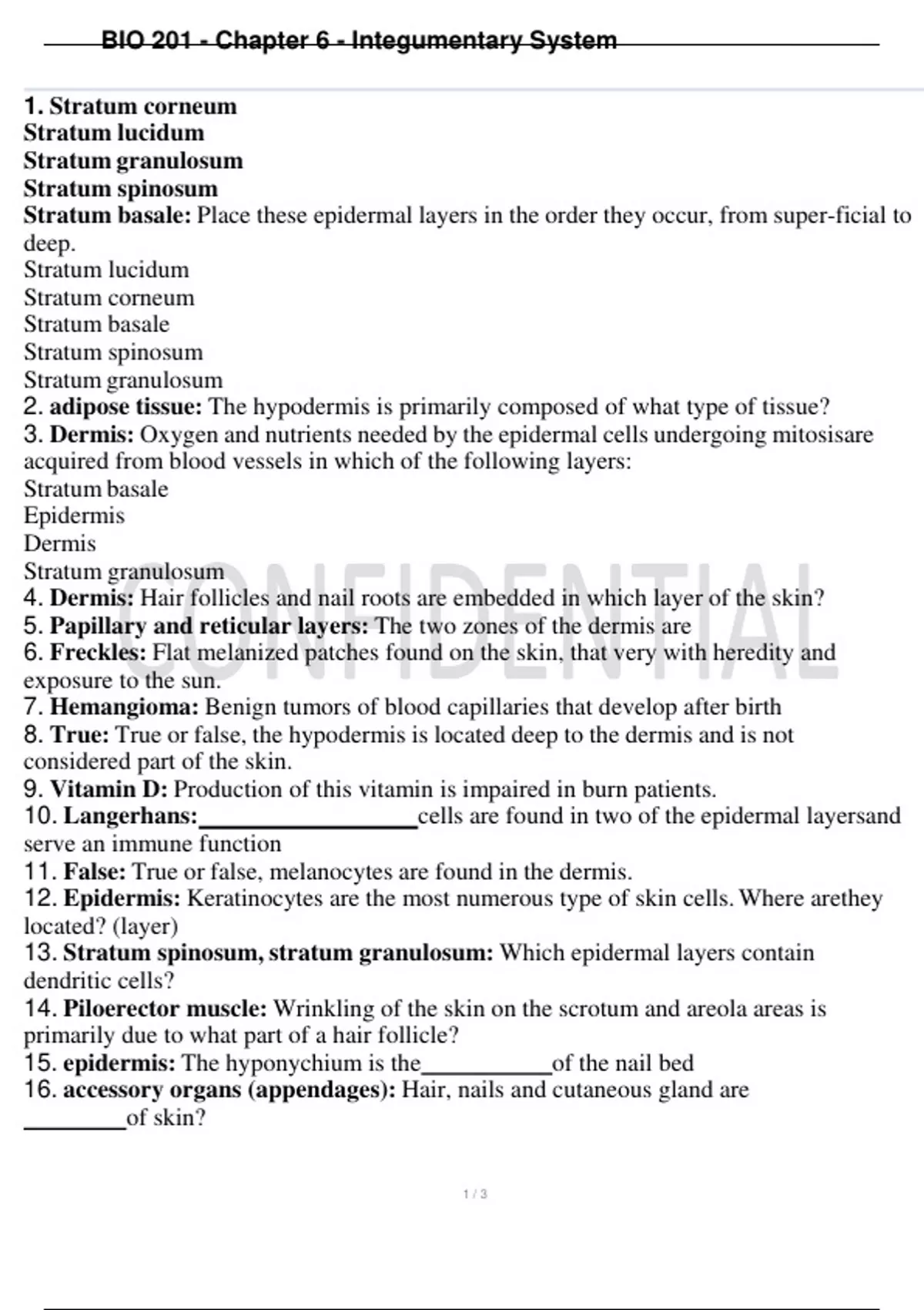 Stratum basale: Place these epidermal layers in the order they occur, from super-ficial to