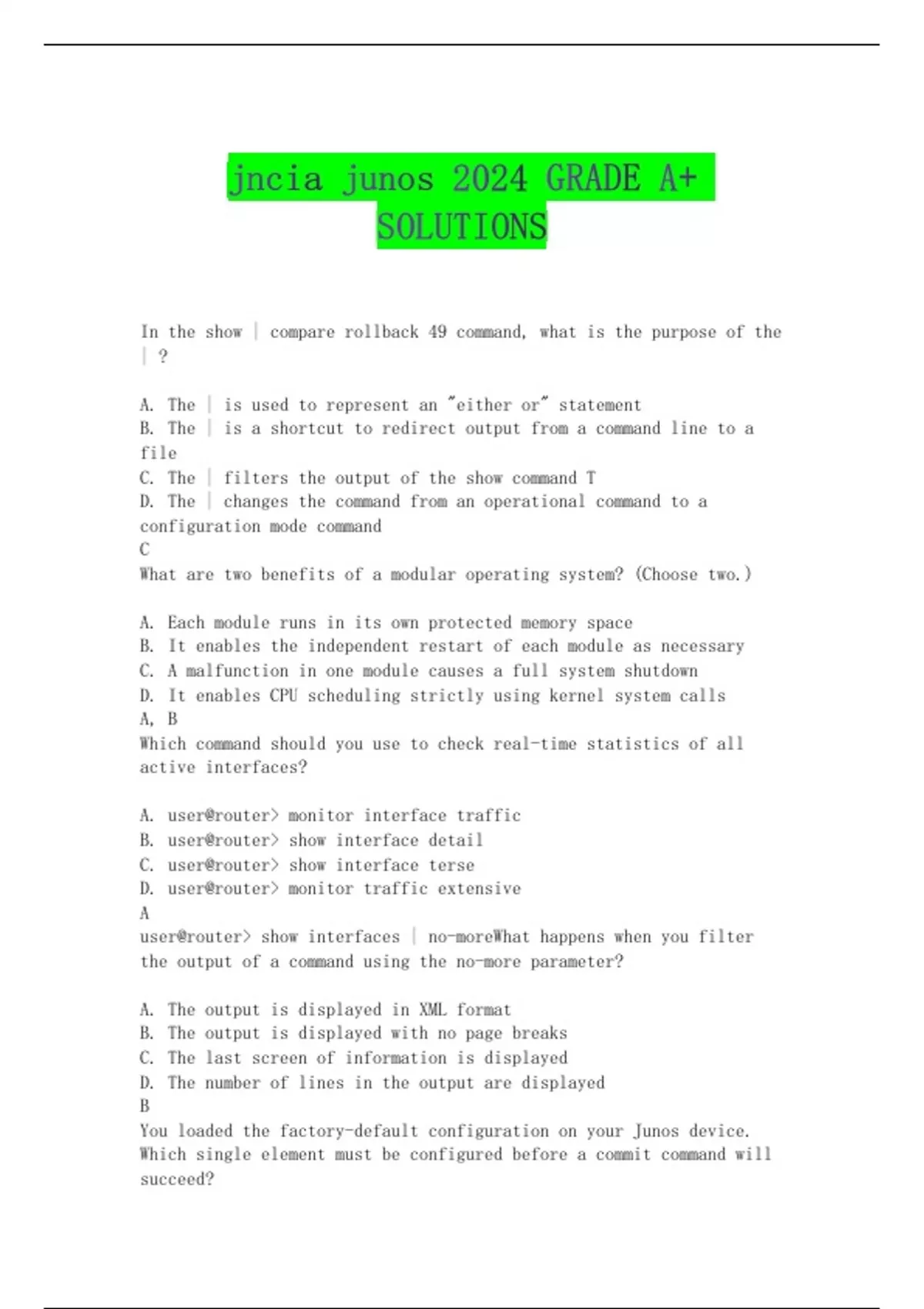 user@router> show interfaces | no-moreWhat happens when you filter