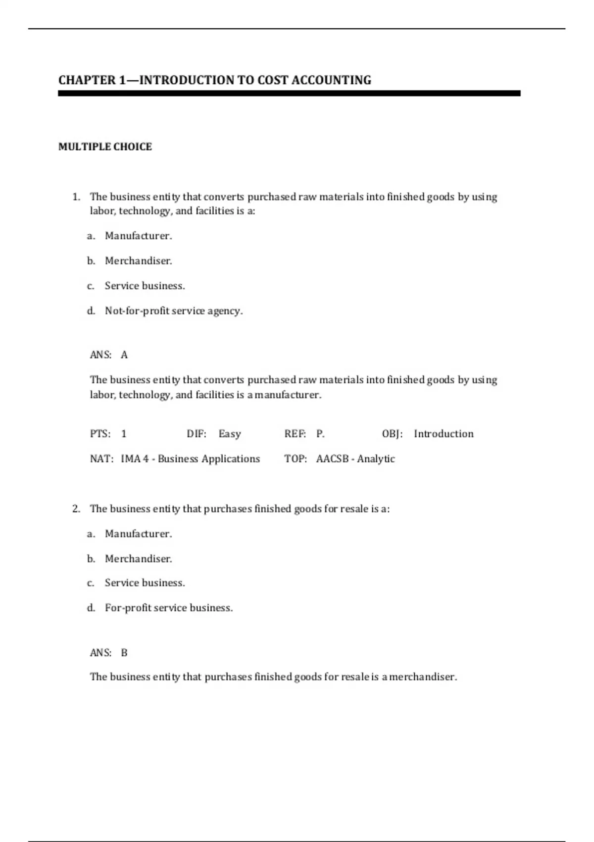 CHAPTER 1—INTRODUCTION TO COST ACCOUNTING