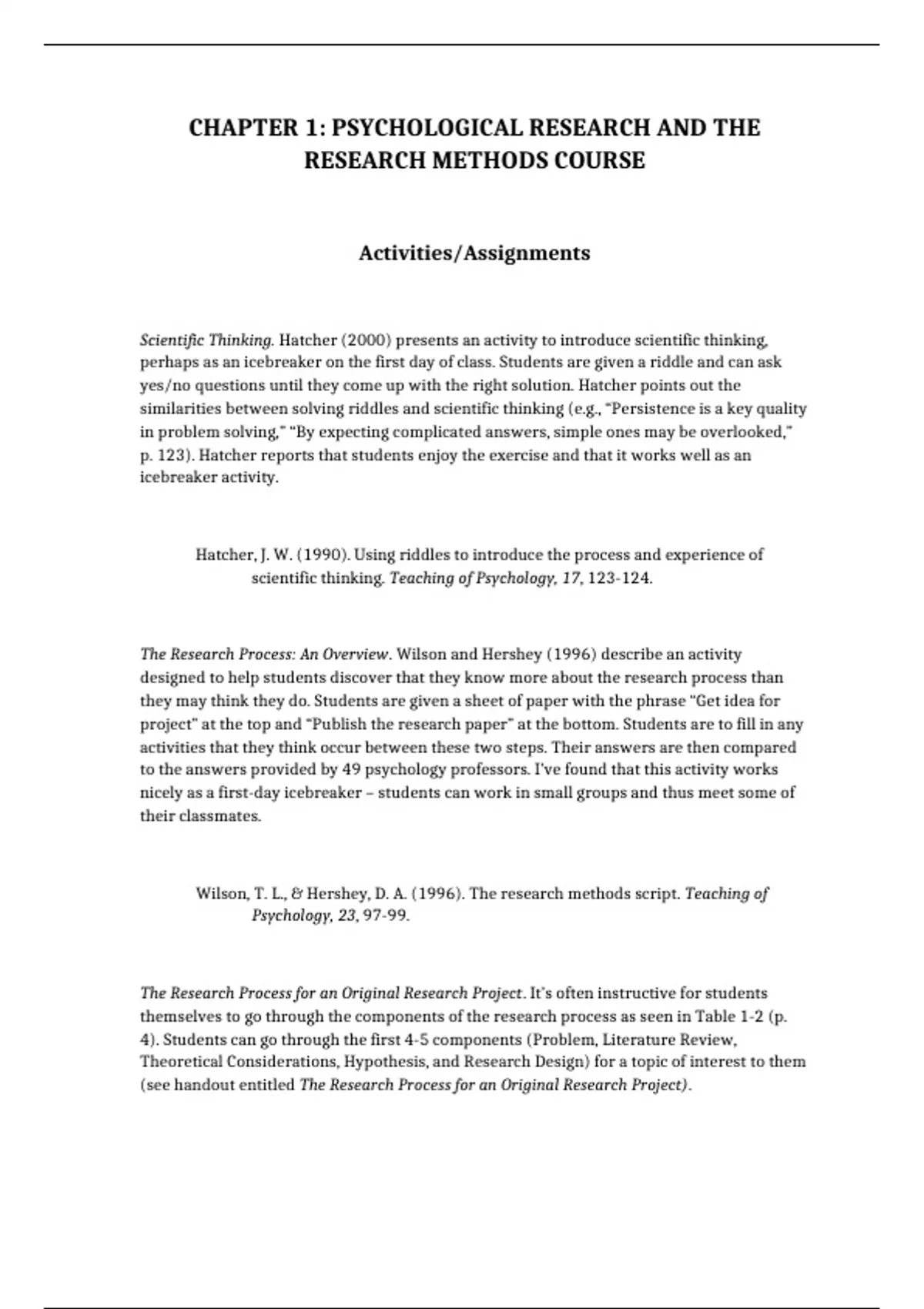 Wilson, T. L., & Hershey, D. A. (1996). The research methods script. Teaching of