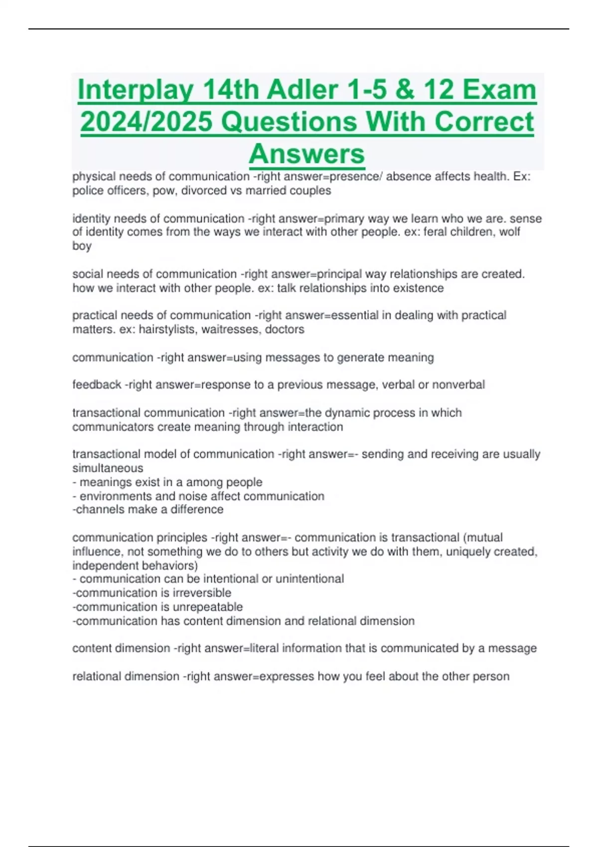 Interplay 14th Adler 1-5 & 12 Exam 2024/2025 Questions With Correct Answers