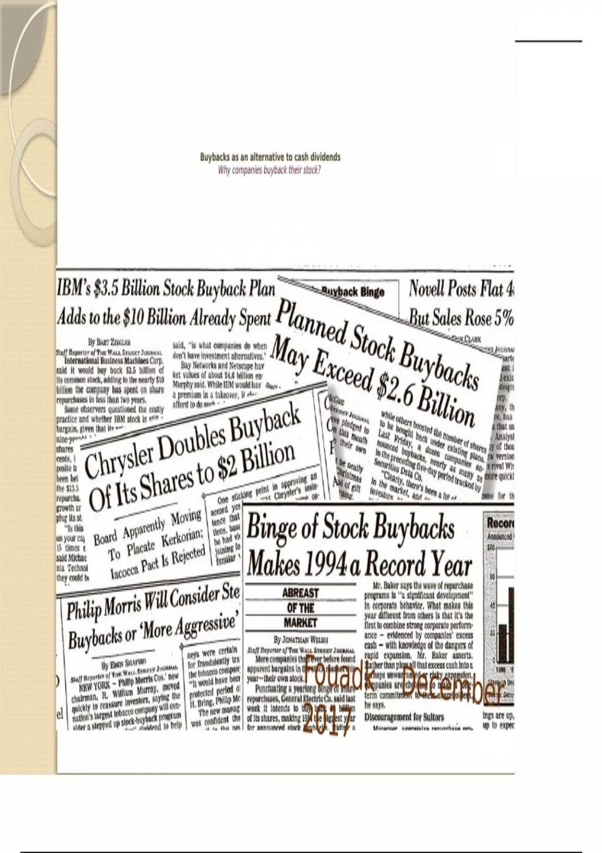 Stock buyback as an alternative to cash dividends - Why firms repurchase their stock?