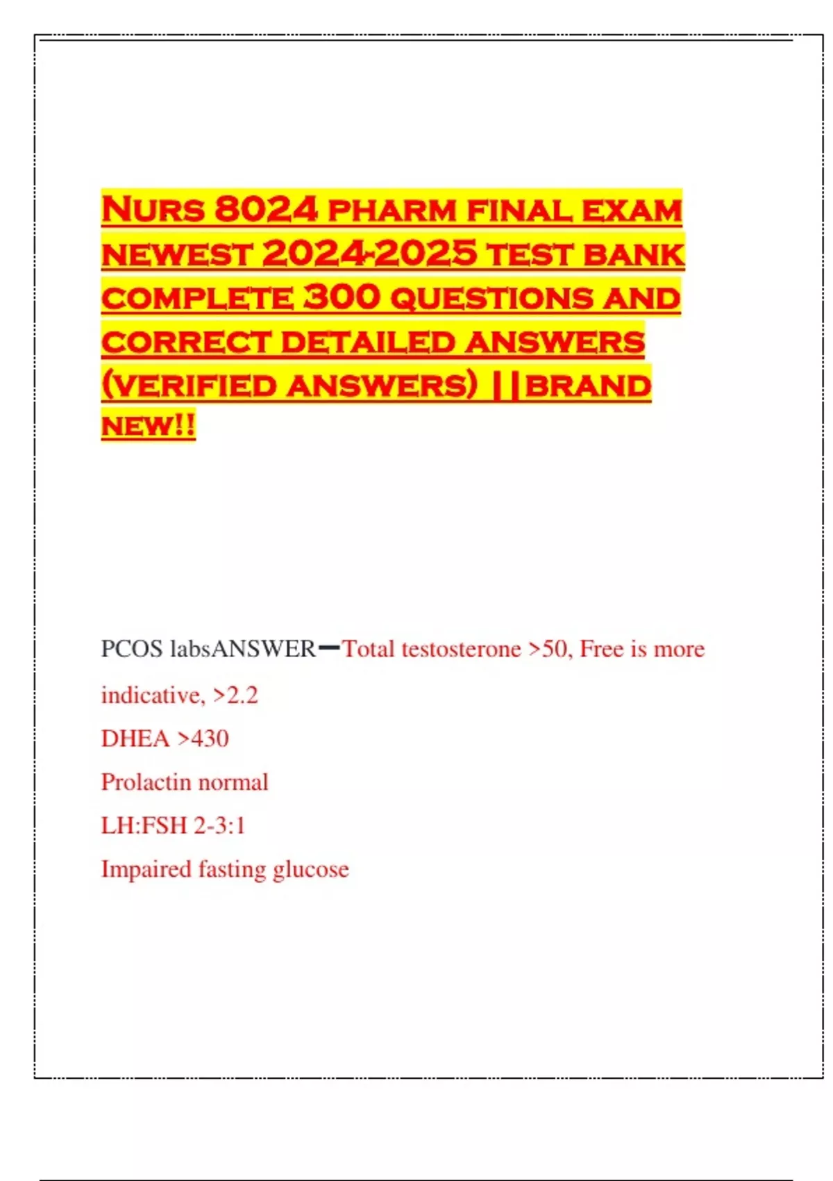 Nurs 8024 pharm final exam newest test bank complete 300 questions and correct detailed answers (verified answers) ||brand new!!