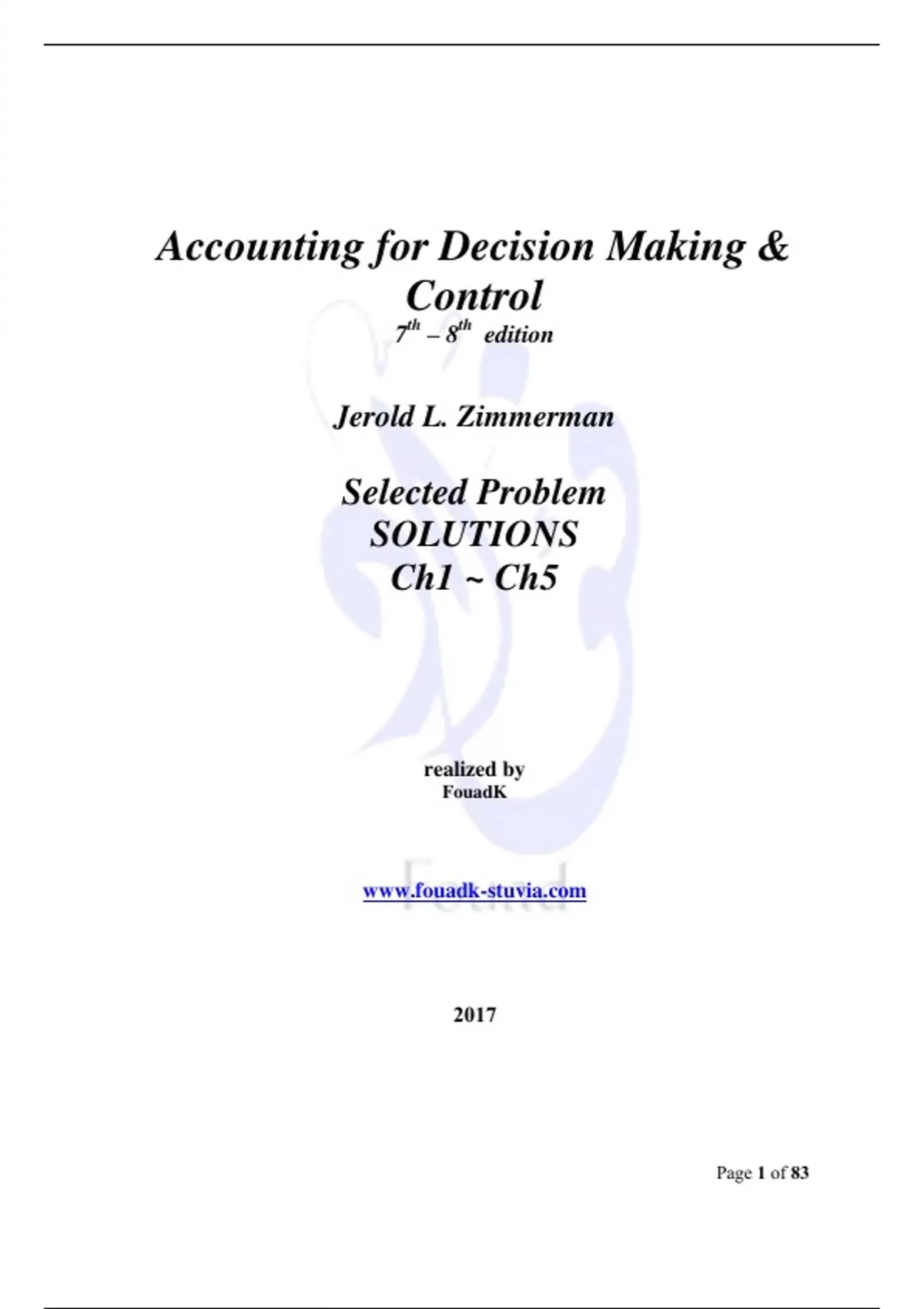 Accounting for Decision Making & Control 7th– 8th edition, Jerold L. Zimmerman, Selected Problem SOLUTIONS Ch1 ~ Ch5