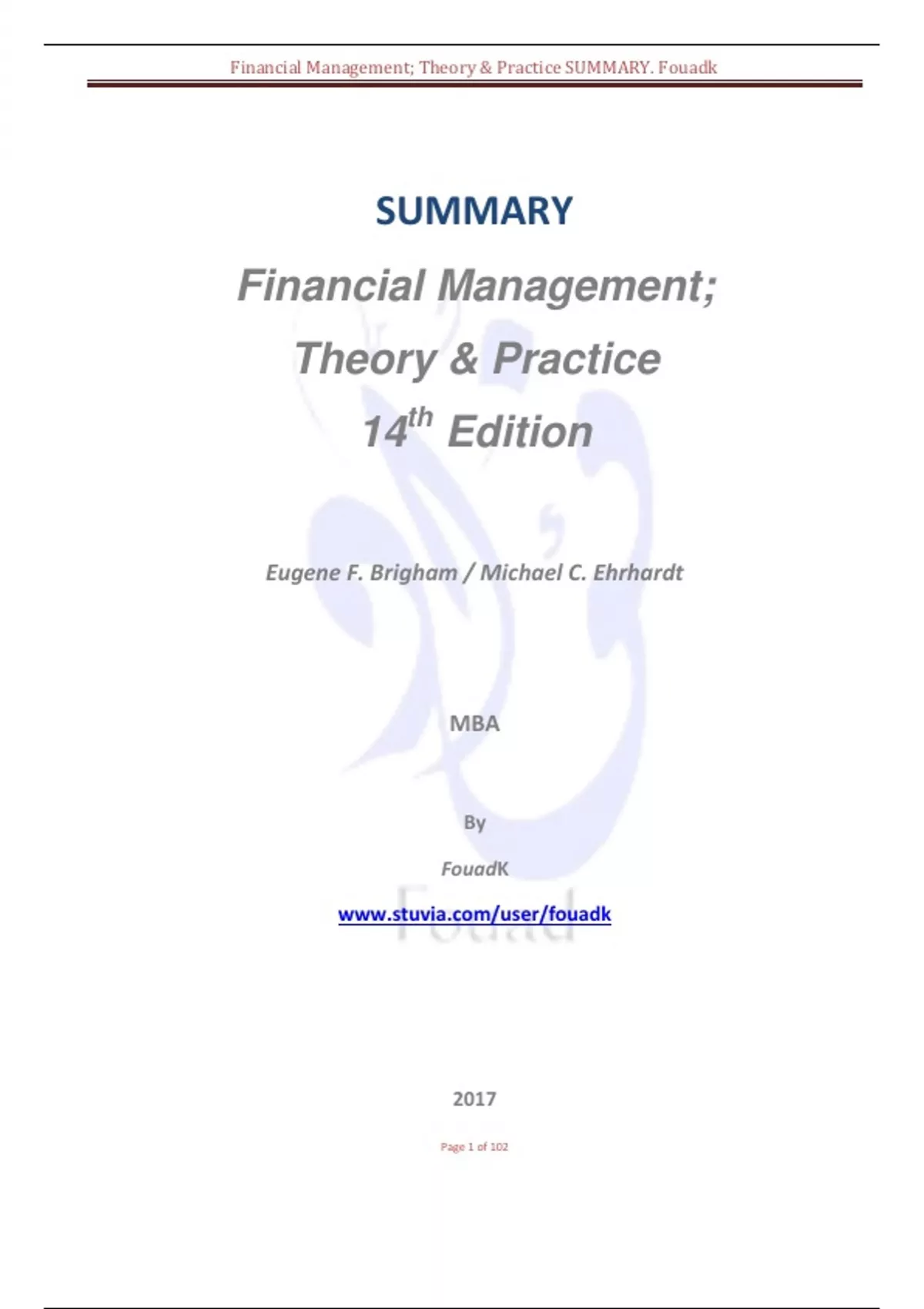 SUMMARY Financial Management; Theory & Practice 14th Edition Eugene F. Brigham / Michael C. Ehrhardt