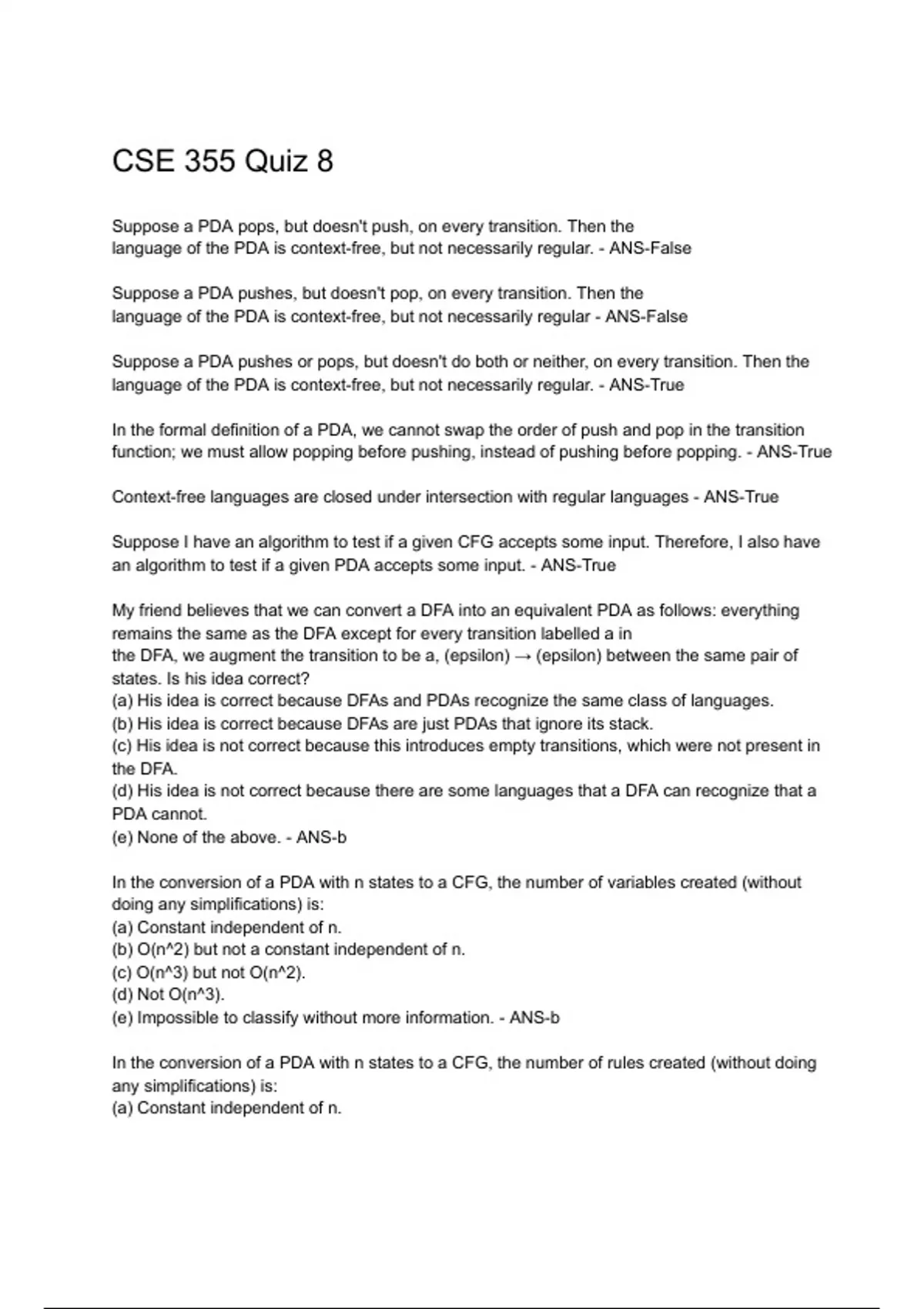 CSE 355 Quiz 8 Questions with 100% Actual correct