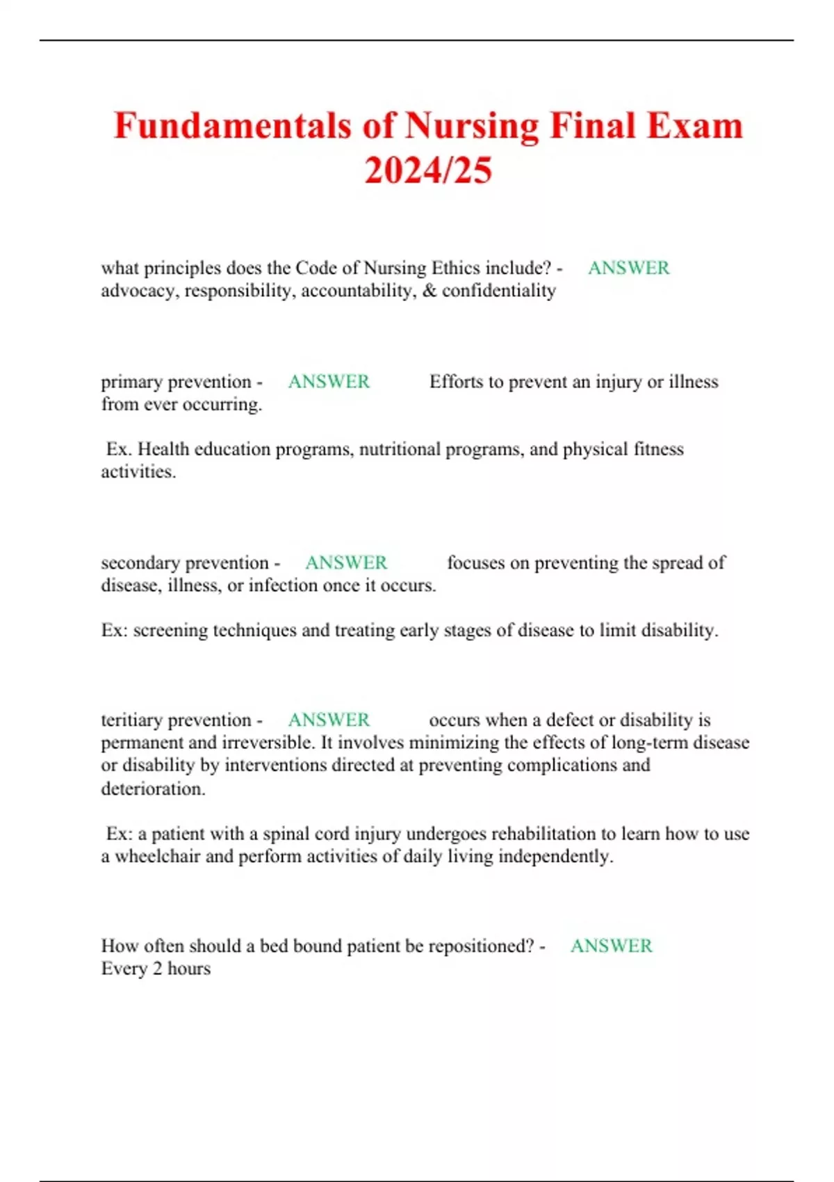 Fundamentals of Nursing Final Exam 2024/25 Fundamentals of Nursing Final Exam 2024/25 Fundamentals of Nursing Final Exam 2024/25