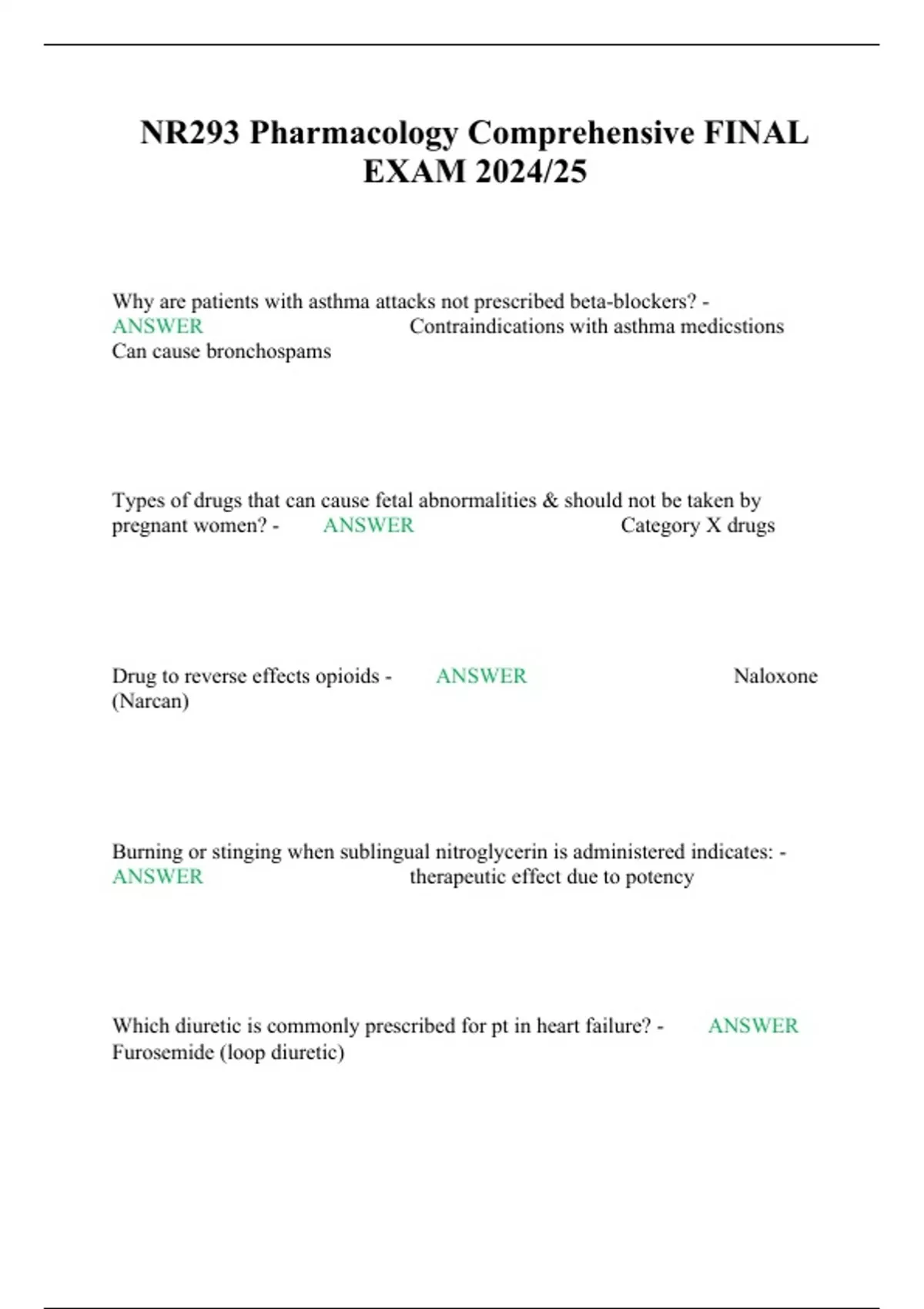 NR293 Pharmacology Comprehensive FINAL EXAM 2024/25
