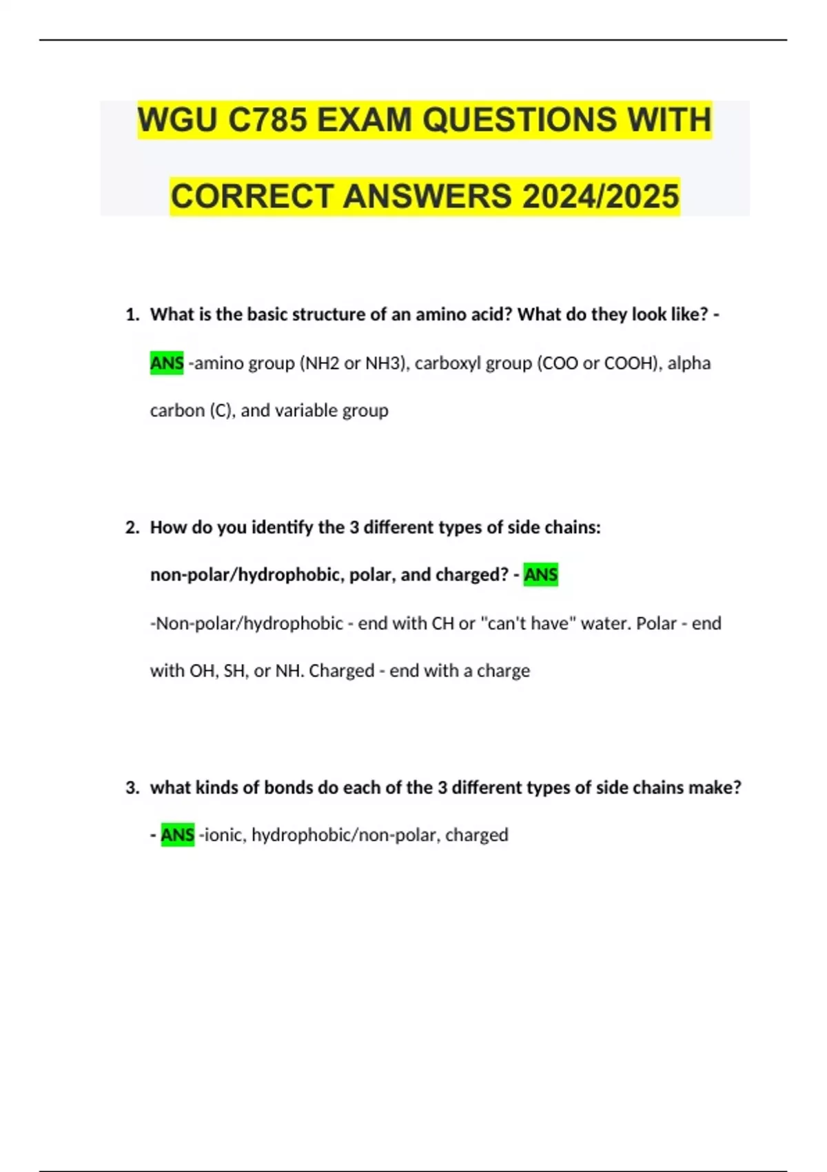 3. what kinds of bonds do each of the 3 different types of side chains make?