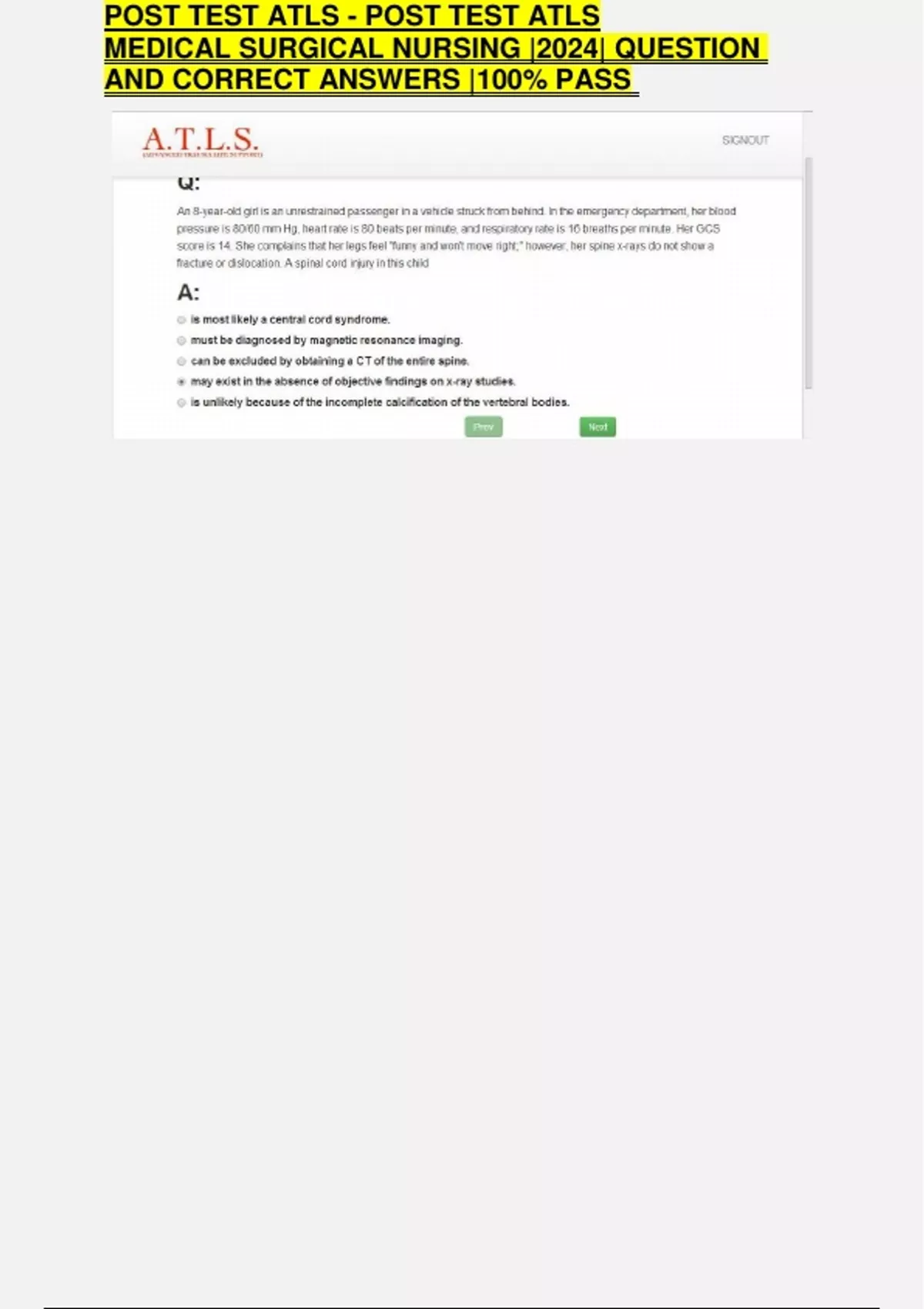 POST TEST ATLS - POST TEST ATLS MEDICAL SURGICAL NURSING |2024| QUESTION AND CORRECT ANSWERS |100% PASS