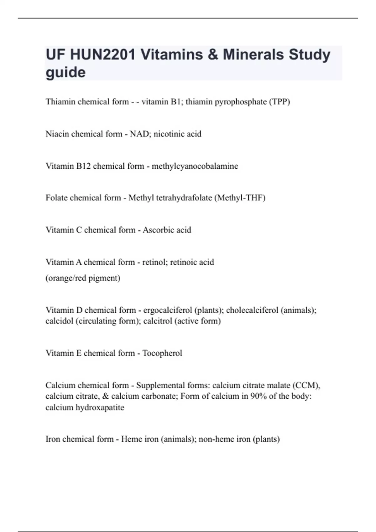 UF HUN2201 Vitamins & Minerals Study guide