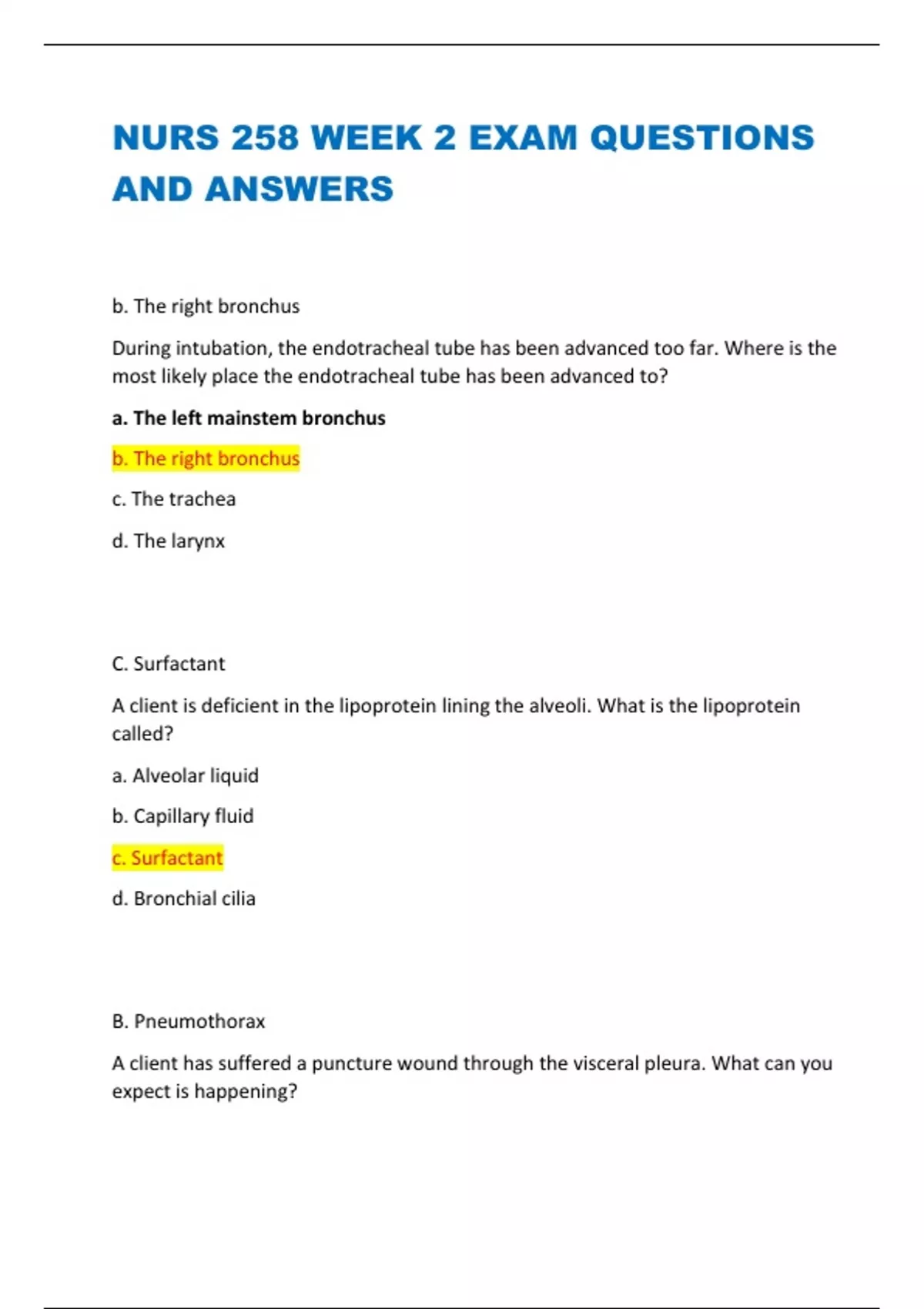 NURS 258 WEEK 2 EXAM QUESTIONS AND ANSWERS