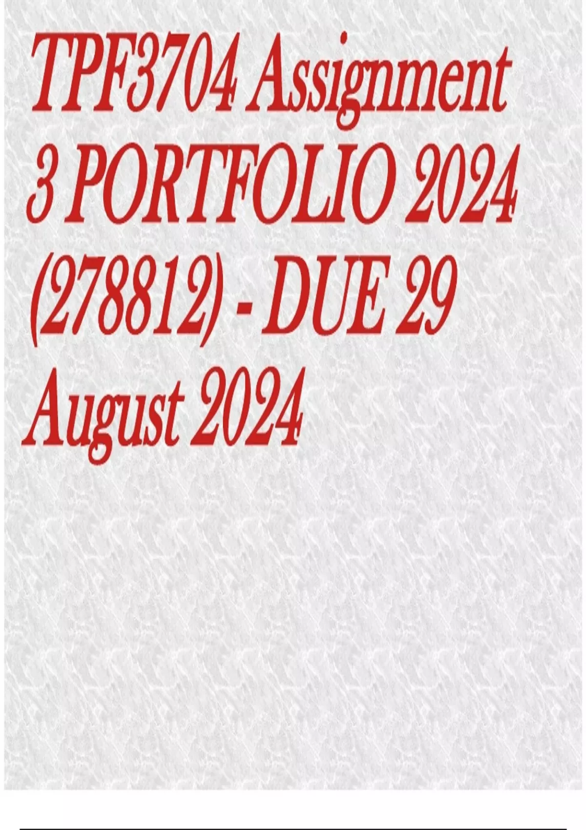TPF3704 Assignment 3 PORTFOLIO 2024 (278812) - DUE 29 August 2024 QUESTIONS AND ANSWERS