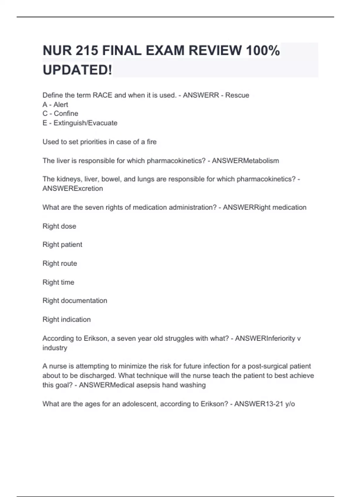 NUR 215 FINAL EXAM REVIEW 100% UPDATED!