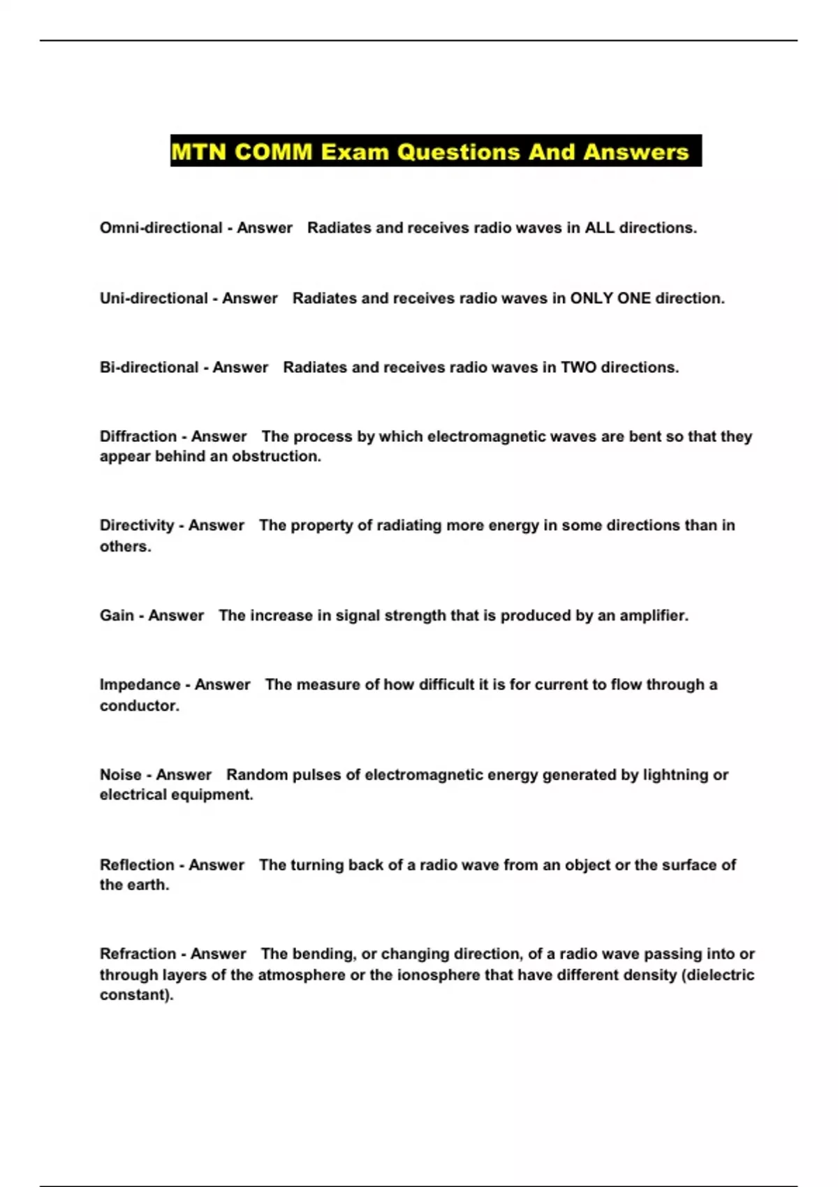 MTN COMM Exam Questions And Answers