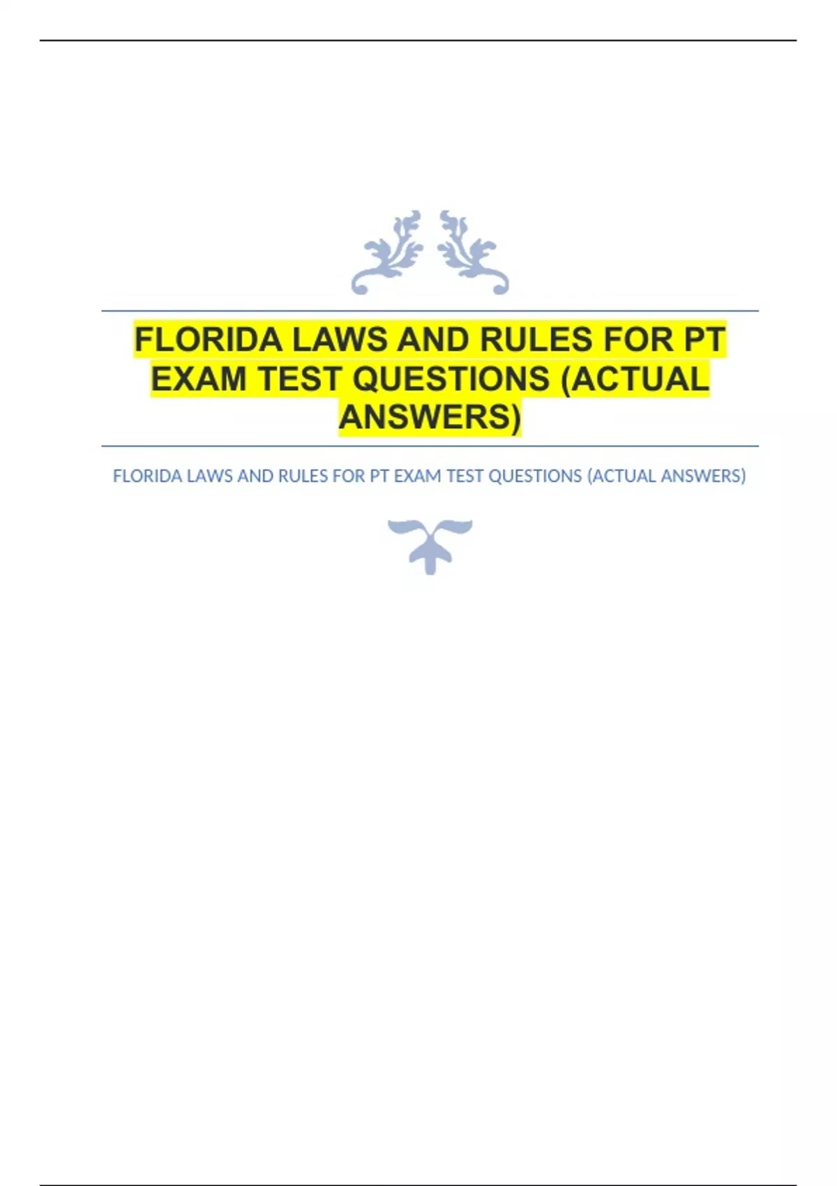 FLORIDA LAWS AND RULES FOR PT EXAM TEST QUESTIONS(ACTUAL ANSWERS)