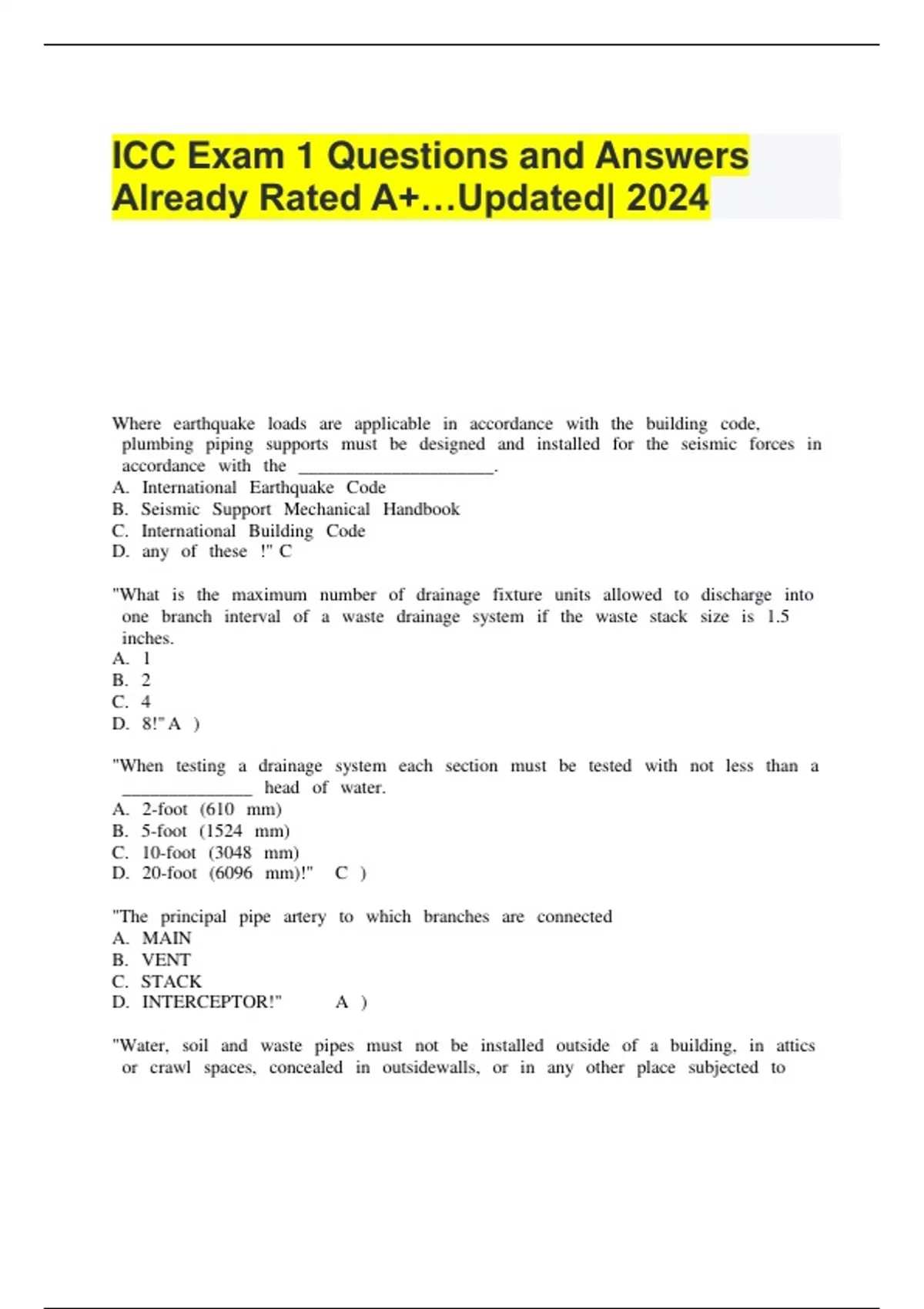 ICC Exam 1 Questions and Answers Already Rated A+…Updated| 2024