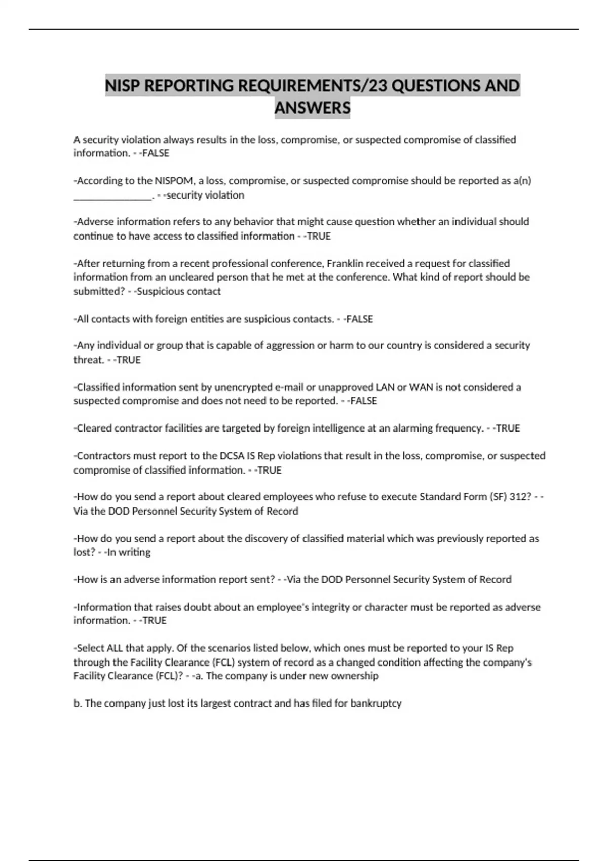 NISP REPORTING REQUIREMENTS/23 QUESTIONS AND ANSWERS