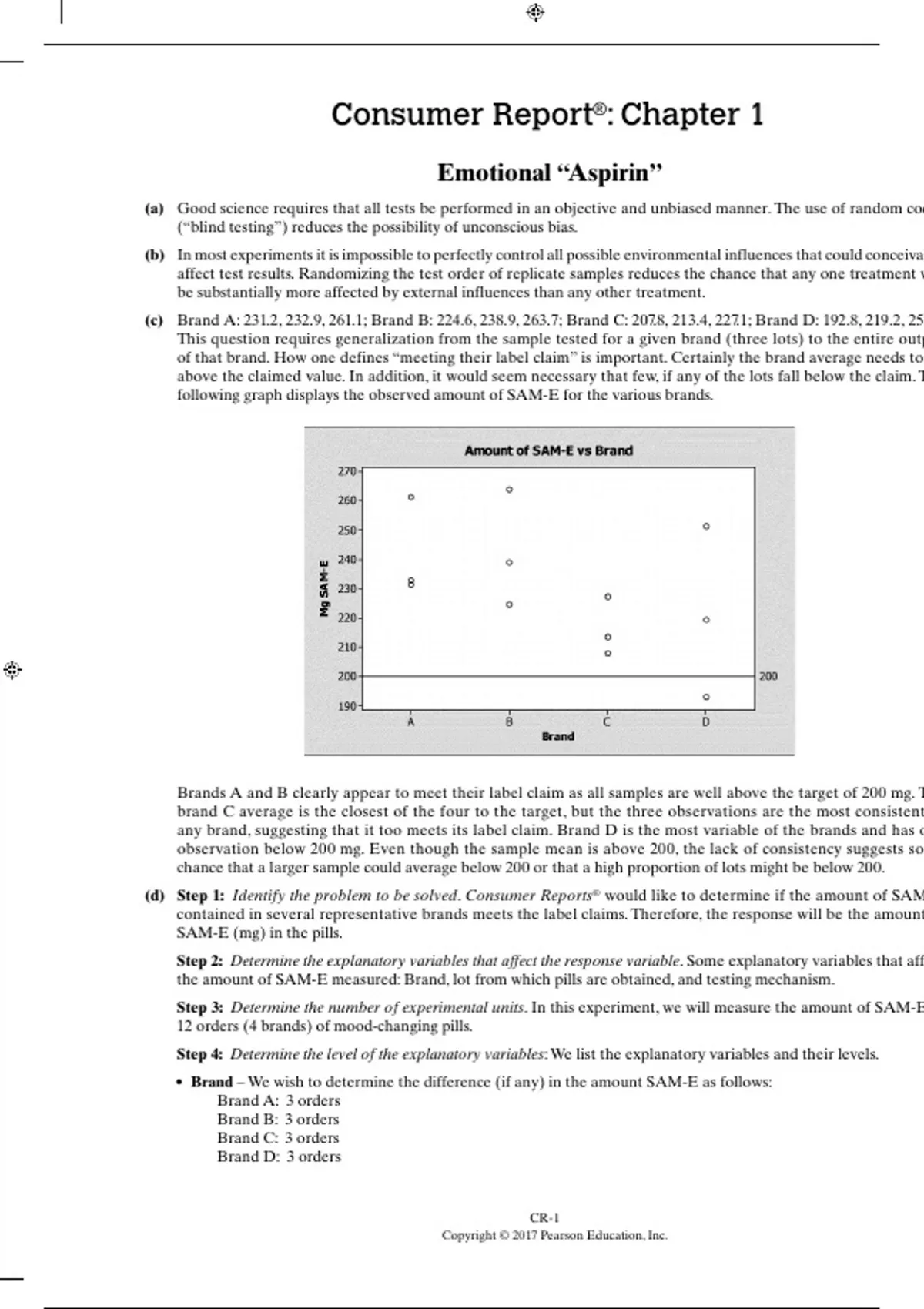 (d) Step 1: Identify the problem to be solved. Consumer Reports® would like to determine if the amount of SAM