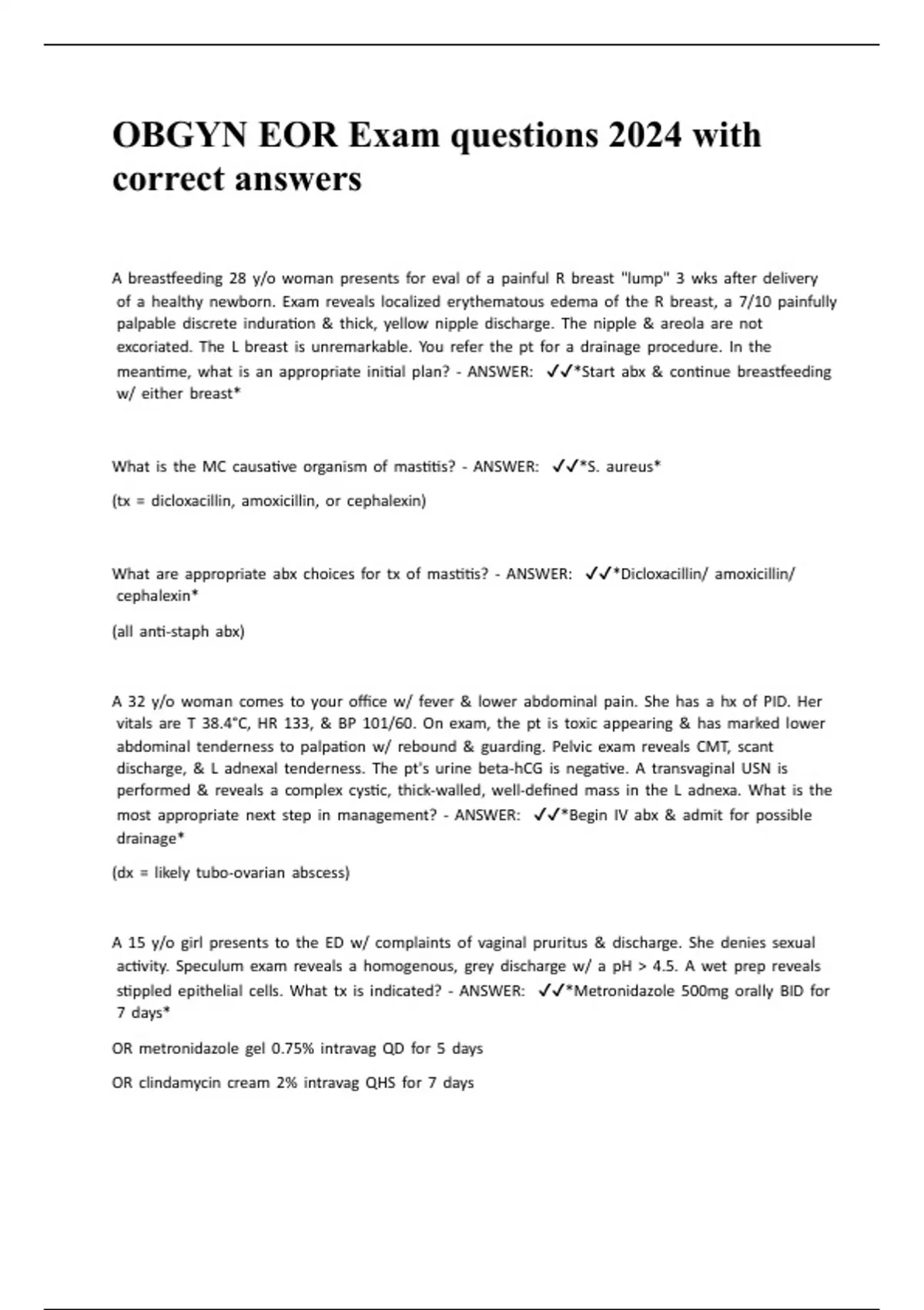 obgyn eor exam questions 2024 with correct answers