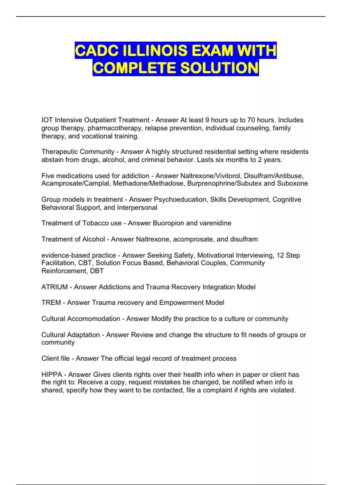 CADC ILLINOIS EXAM WITH COMPLETE SOLUTION
