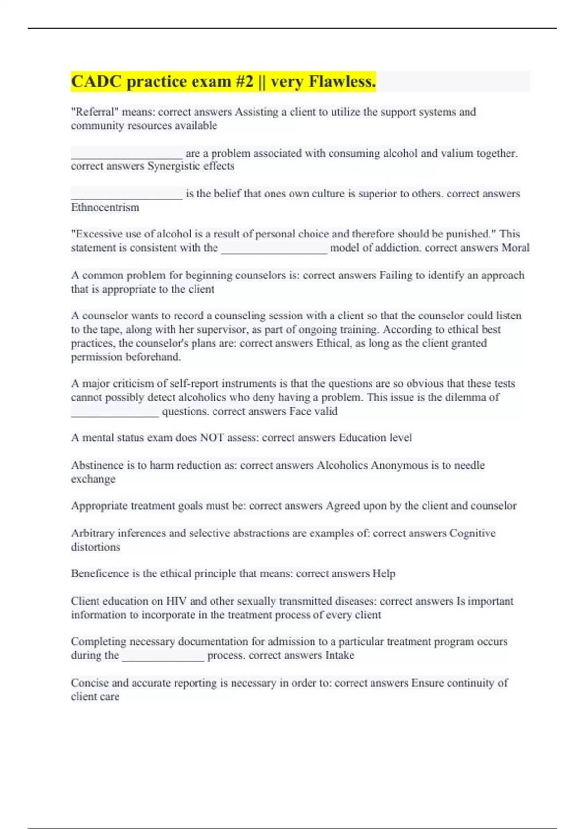 _______________ questions. correct answers Face valid