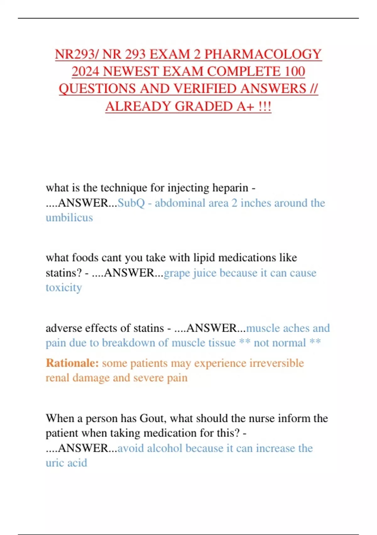 NR293/ NR 293 EXAM 2 PHARMACOLOGY 2024 NEWEST EXAM COMPLETE 100 QUESTIONS AND VERIFIED ANSWERS // ALREADY GRADED A+ !!!