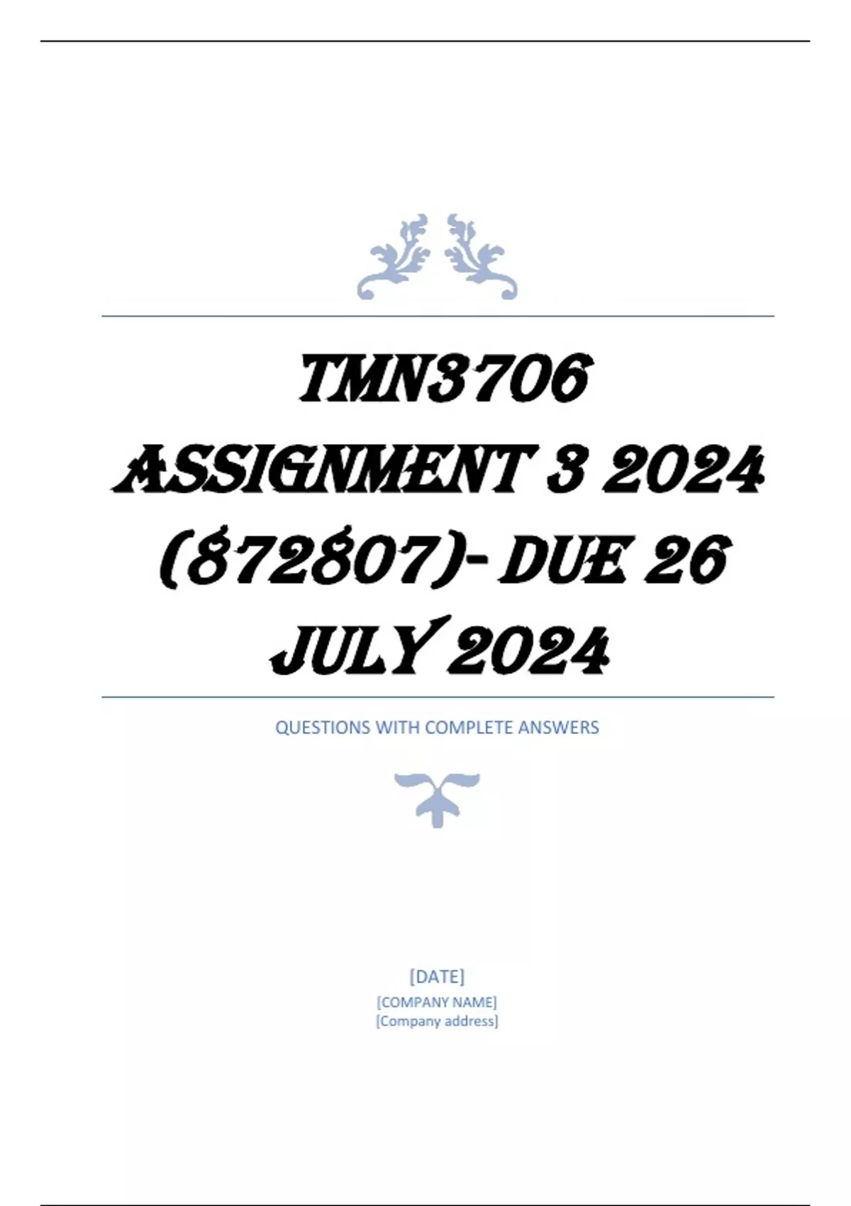 , TMN3706 Assignment 3 2024 (872807)- DUE 26 July 2024