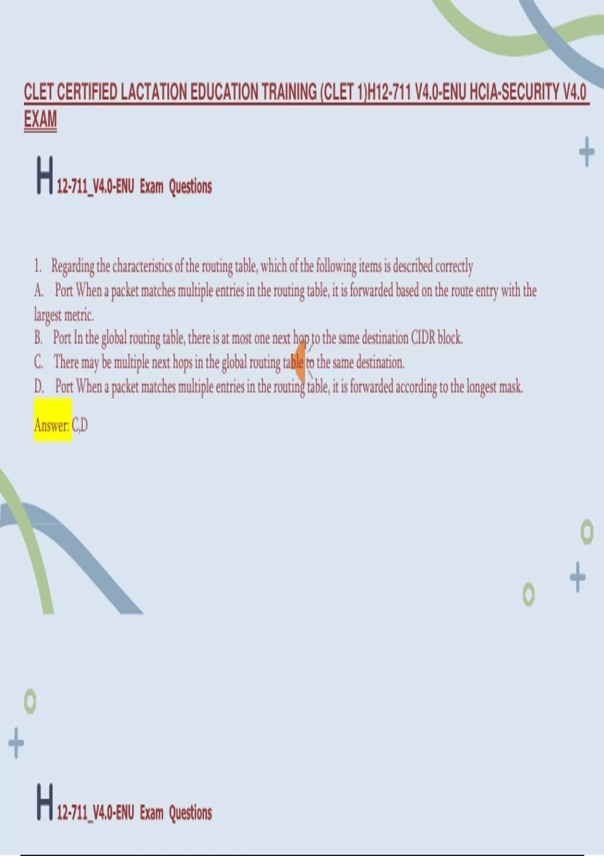 CLET CERTIFIED LACTATION EDUCATION TRAINING (CLET 1)H12-711 V4.0-ENU HCIA-SECURITY V4.0 EXAM
