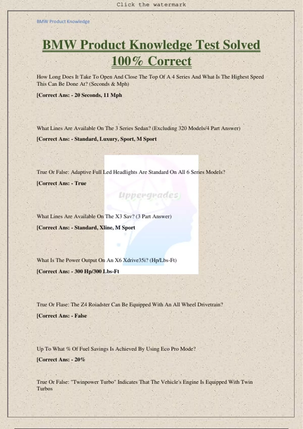 BMW Product Knowledge Test Solved 100% Correct,BMW Product Knowledge Test Solved 100% Correct,BMW Product Knowledge Test Solved 100% Correct