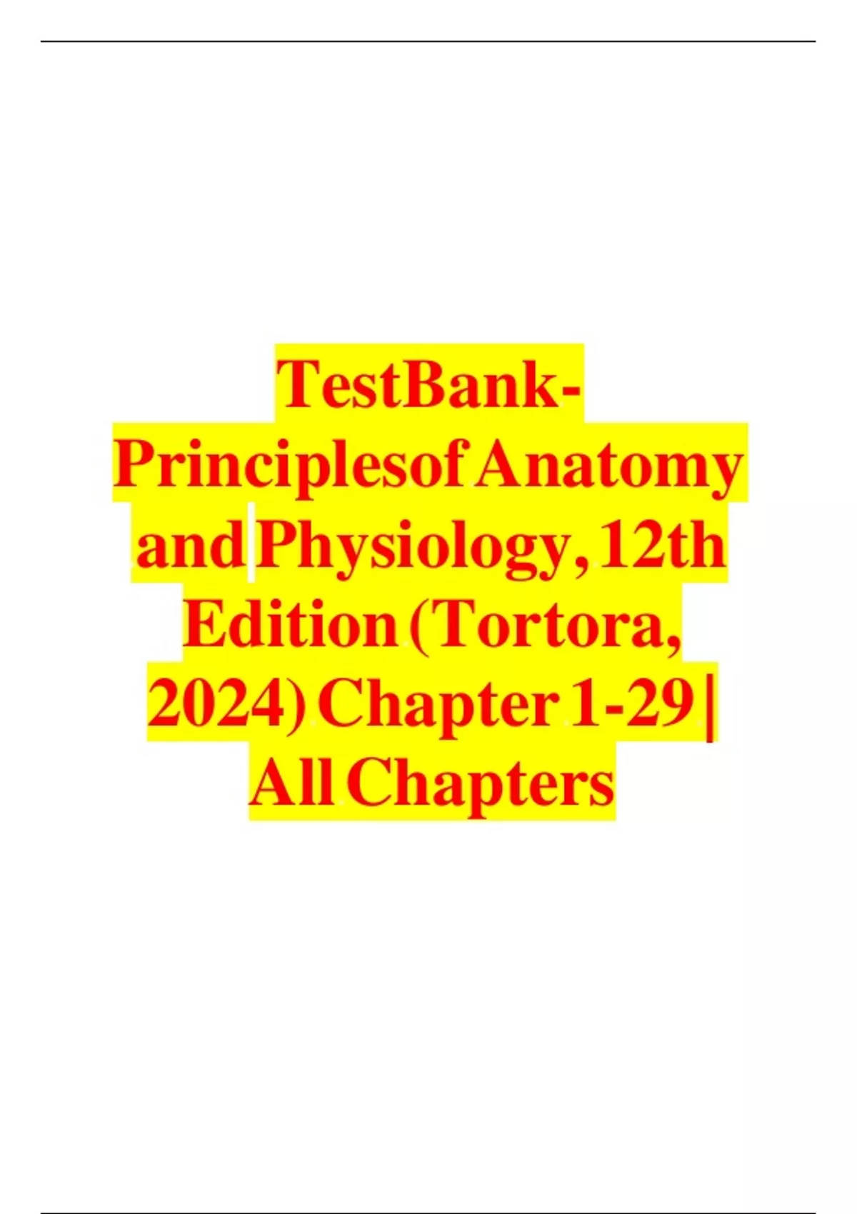 Test Bank - Principles of Anatomy and Physiology, 12th Edition (Tortora, 2024) Chapter 1-29 | All Chapters