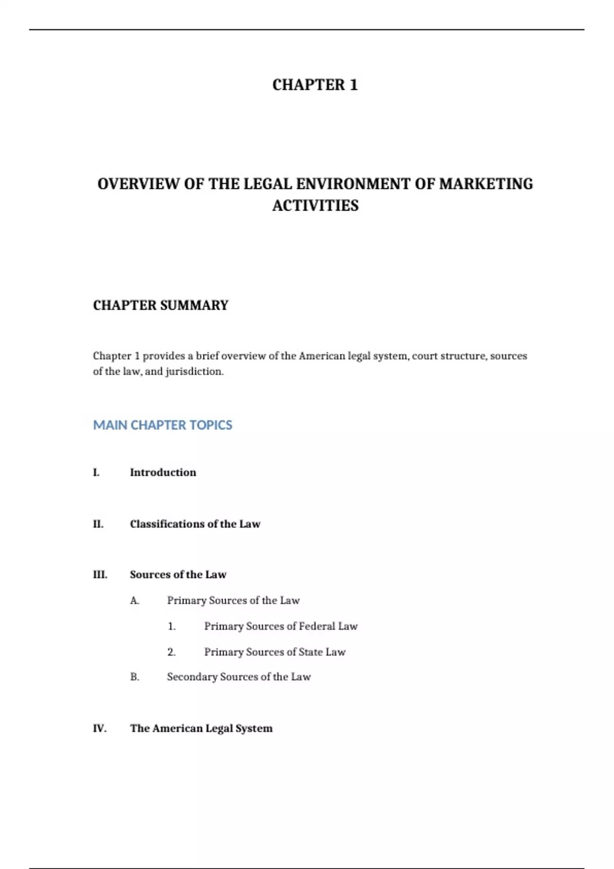 Chapter 1 provides a brief overview of the American legal system, court structure, sources