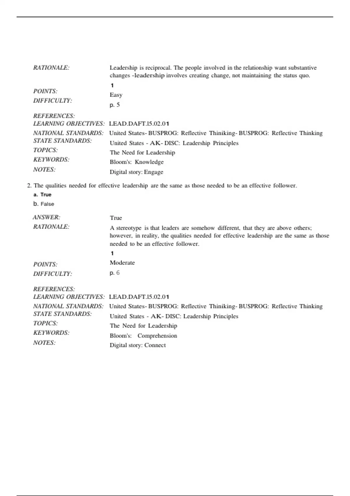 2. The qualities needed for effective leadership are the same as those needed to be an effective follower.