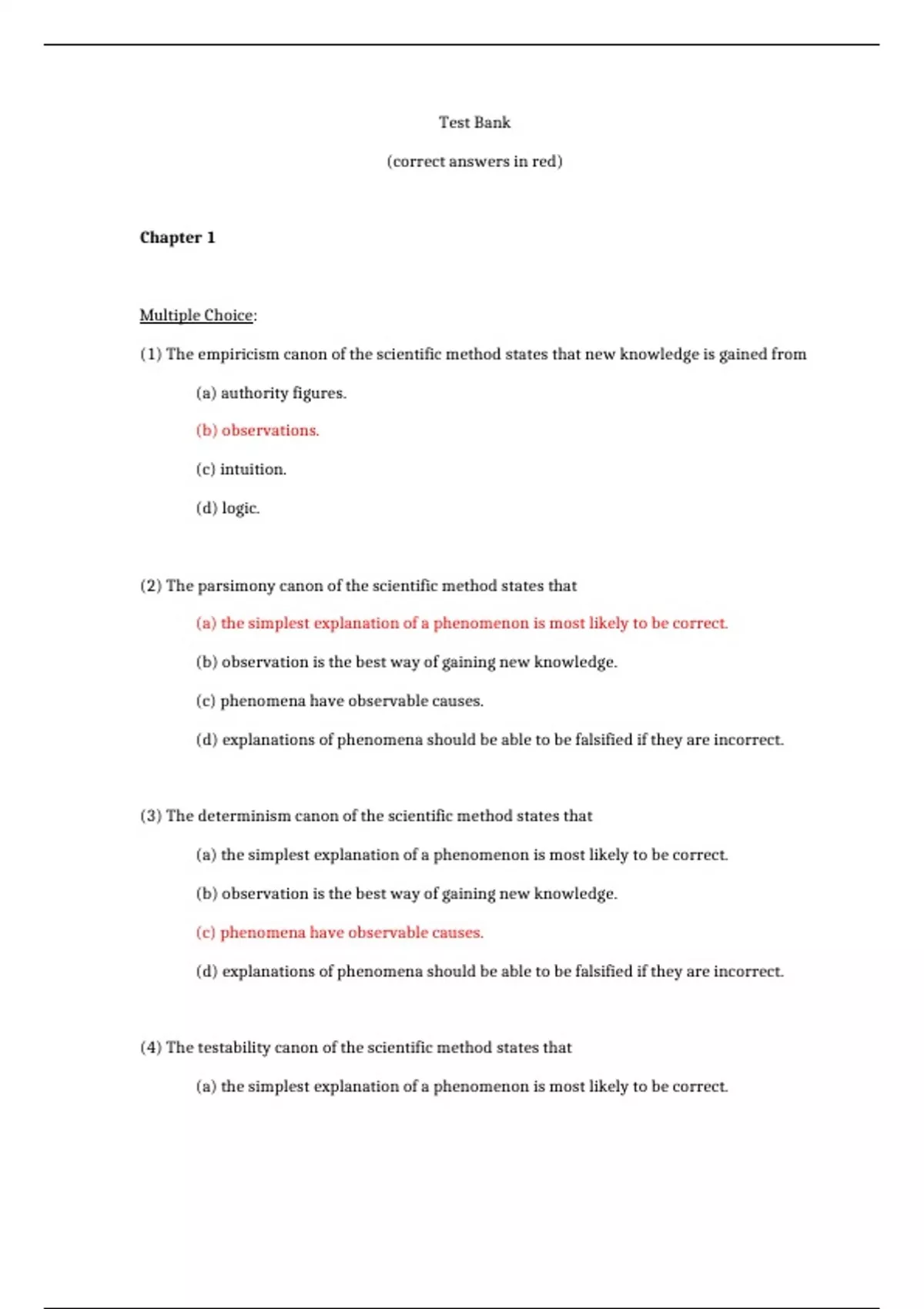 (4) The testability canon of the scientific method states that