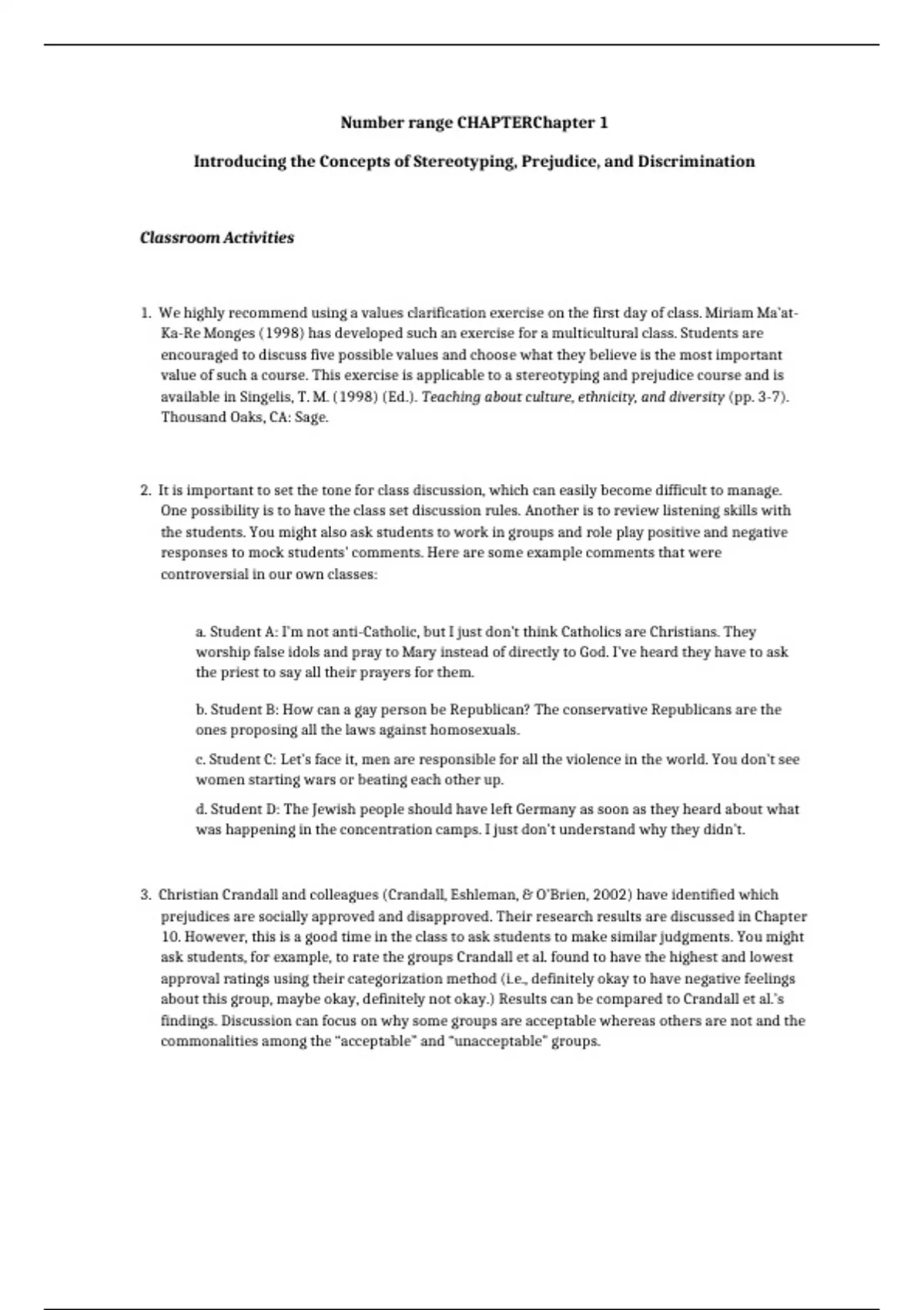 value of such a course. This exercise is applicable to a stereotyping and prejudice course and is