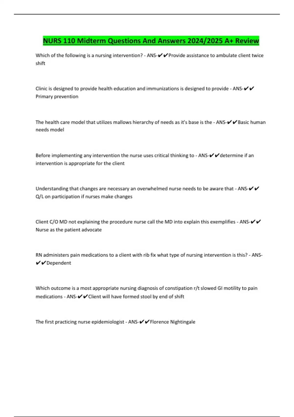 NURS 110 Midterm Questions And Answers 2024/2025 A+ Review