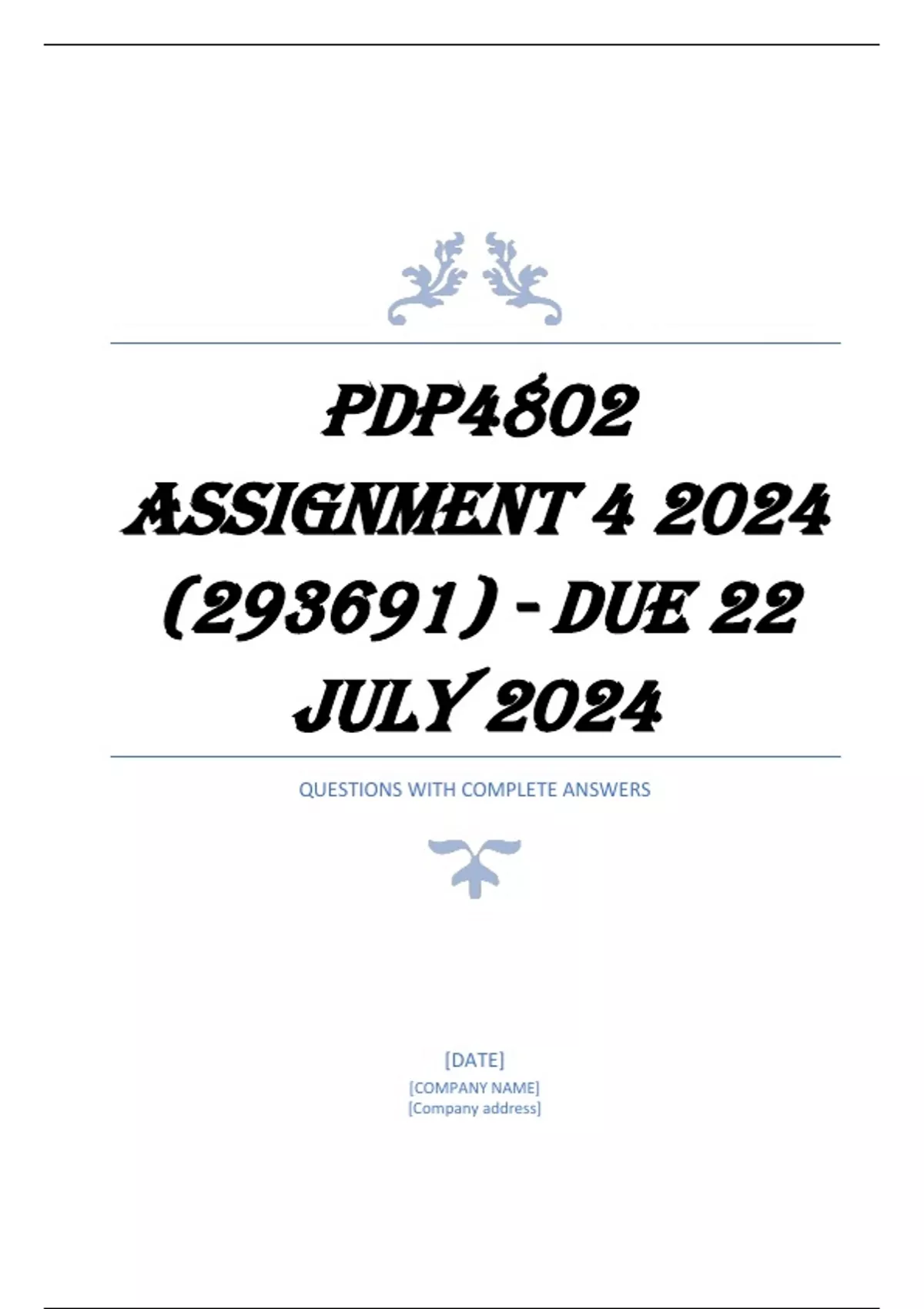 PDP4802 Assignment 4 2024 (293691) - DUE 22 July 2024 QUESTIONS AND ANSWERS